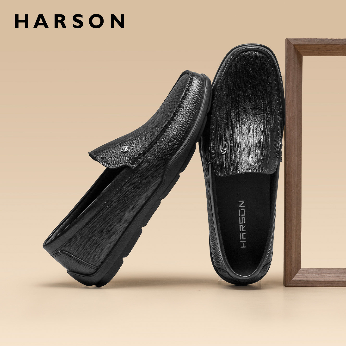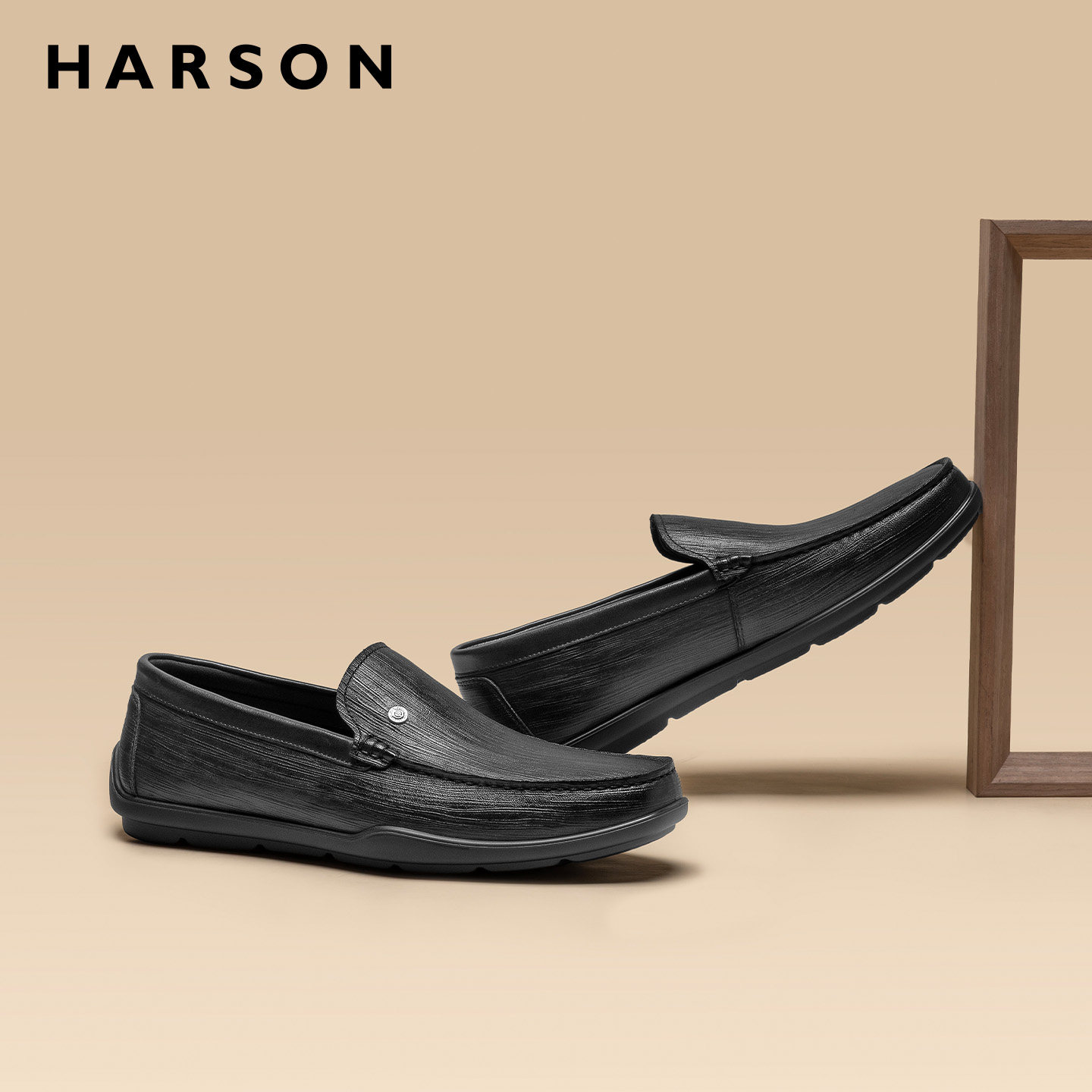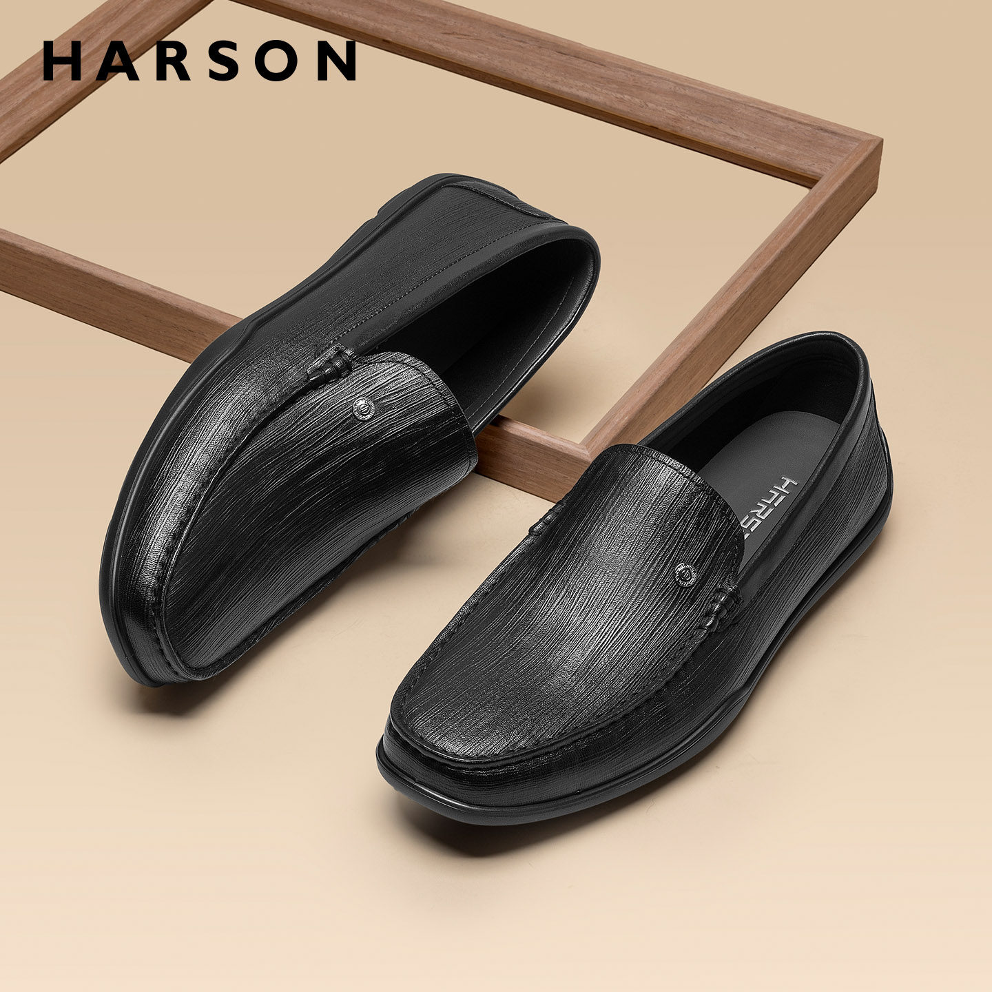 哈森春季男鞋2026新款真皮乐福鞋男士英伦风爸爸皮鞋一脚蹬懒人鞋