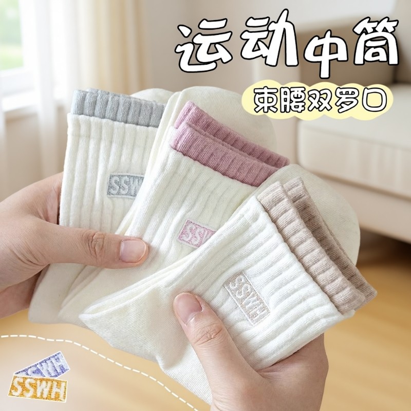 袜子女款纯棉中筒袜秋冬季抗菌防臭吸汗运动棉袜春秋款无骨短筒袜