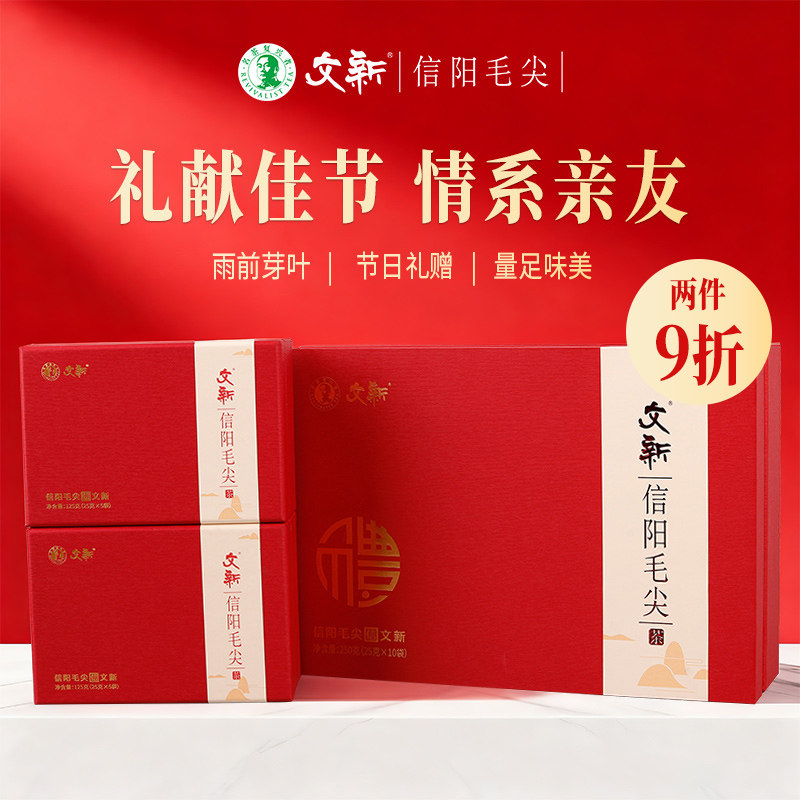 文新信阳毛尖茶叶绿茶2025新茶高山雨前春茶送长辈礼盒装250g