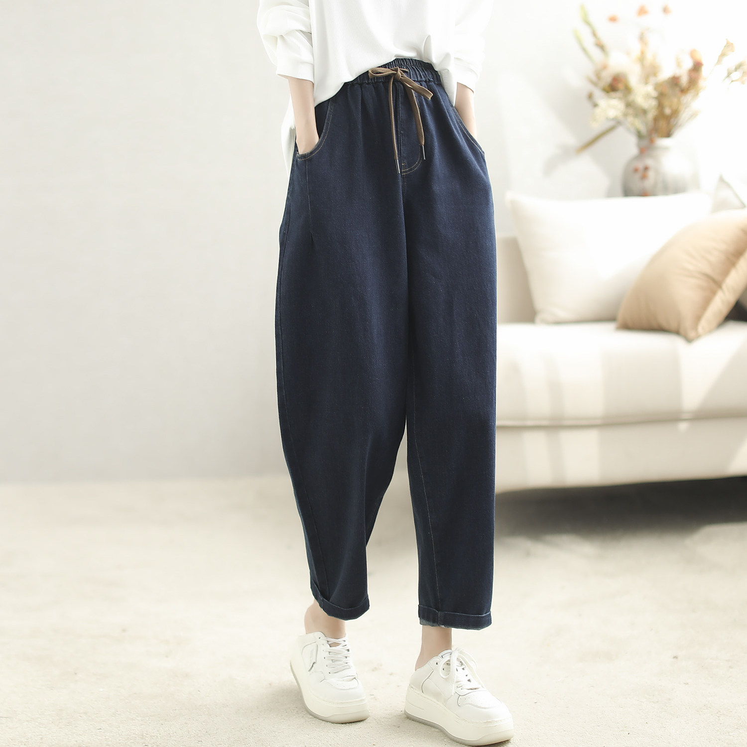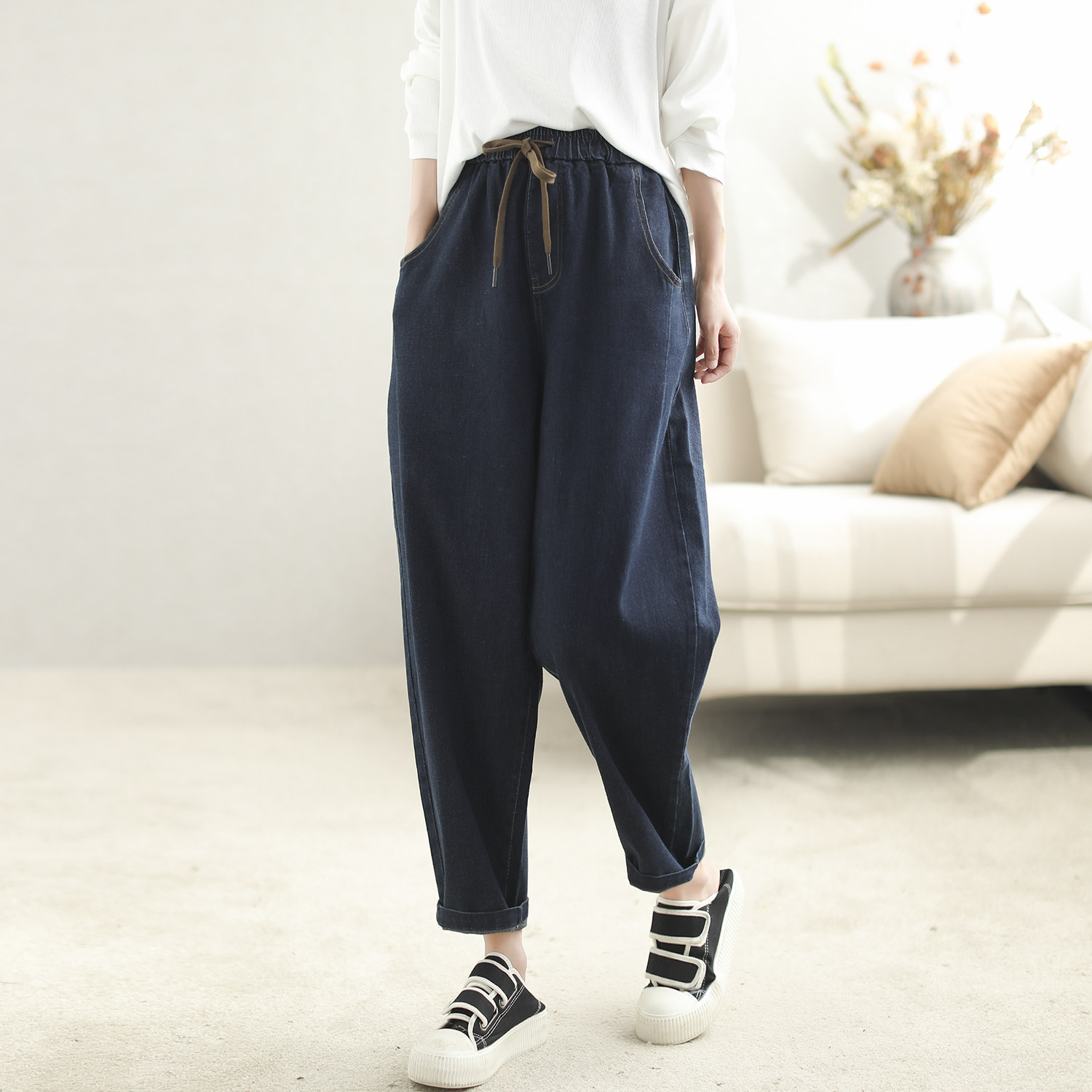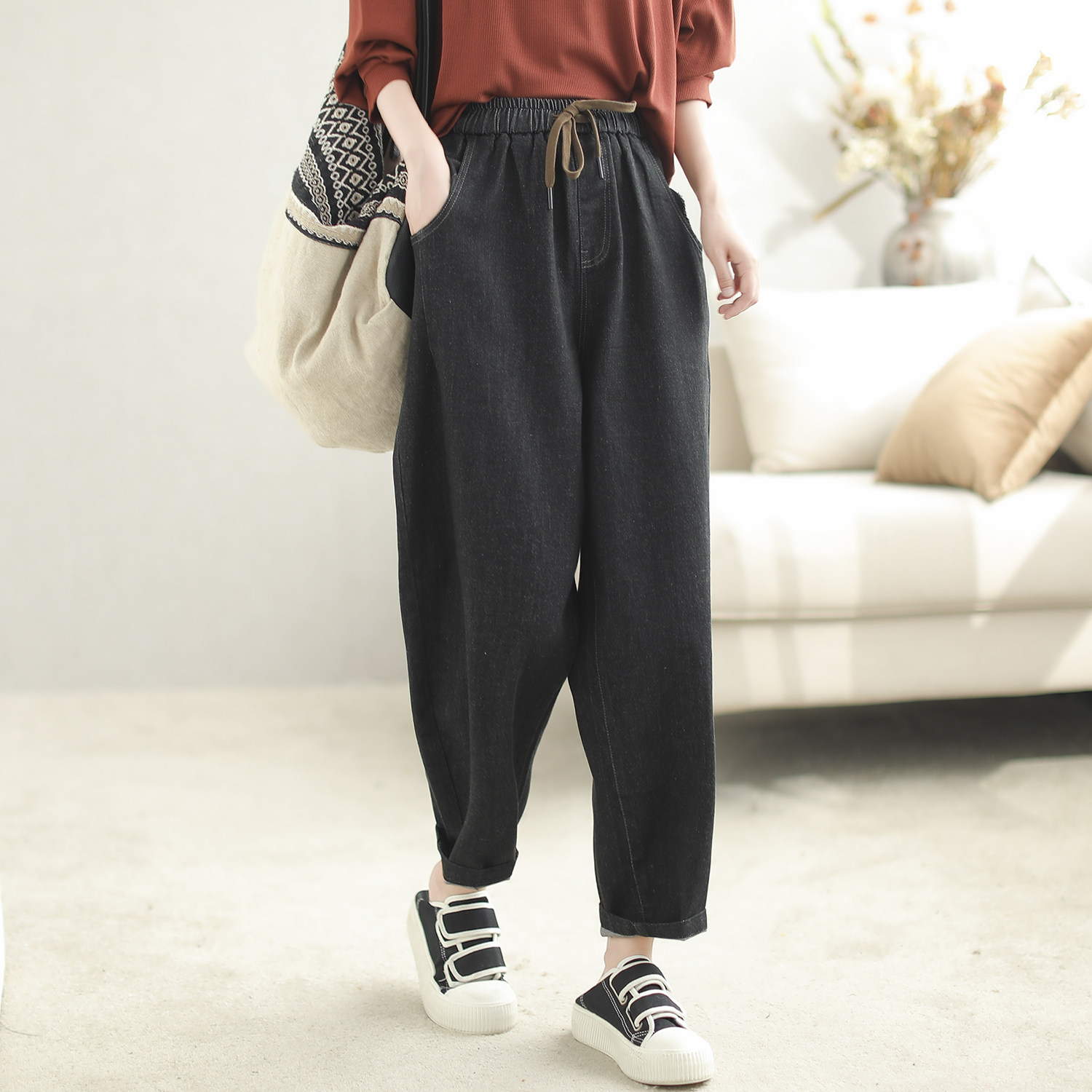 咖咪羽牛仔裤女原创休闲女士裤子黑色直筒宽松复古时尚女装哈伦裤