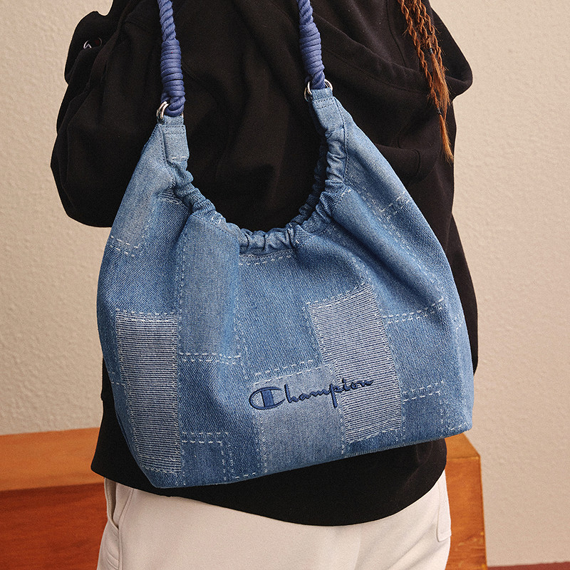 champion冠军新款轻便立体形托特包女牛仔包大容量单肩包春夏