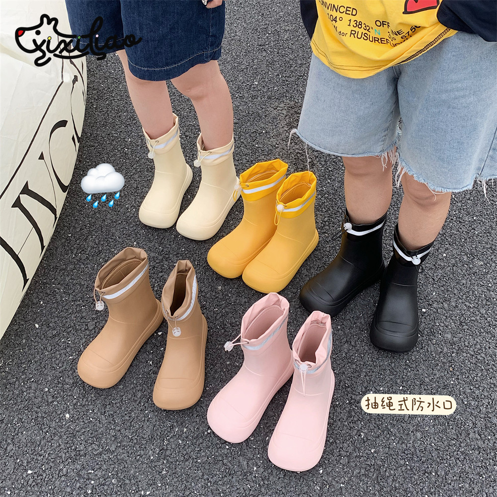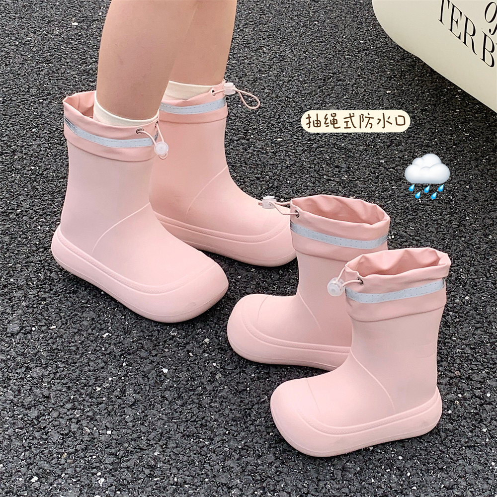 细细条 户外防水亲子雨鞋女抽绳束口雨靴四季通用休闲防滑水筒靴