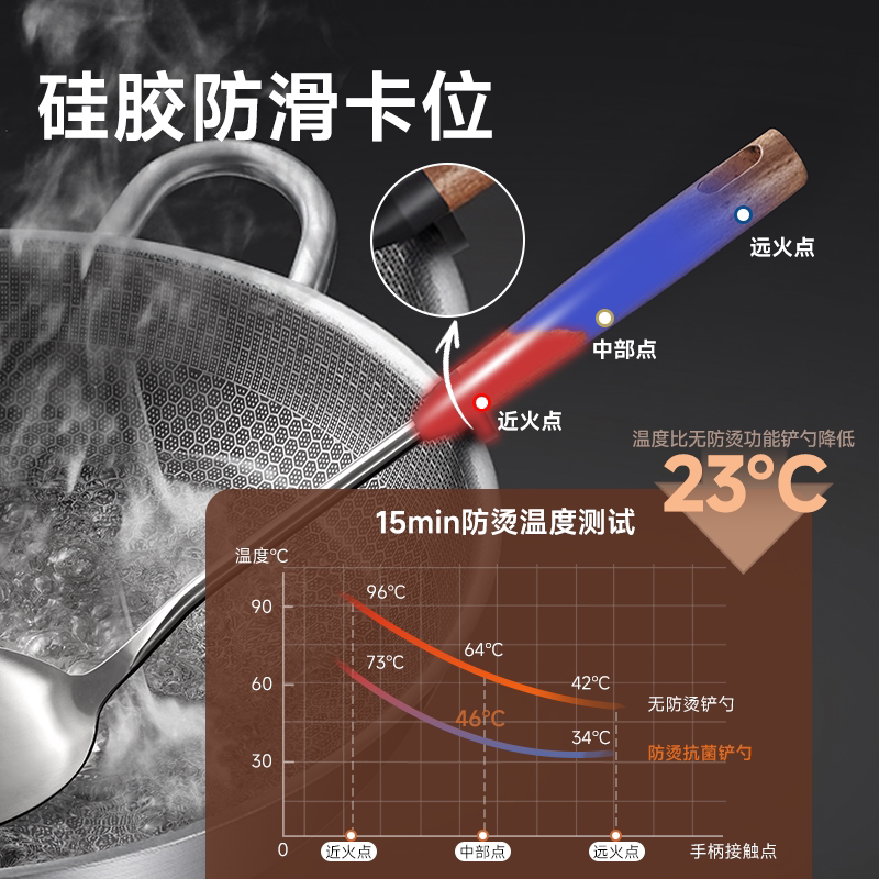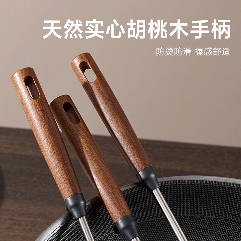 锅铲套装家用胡桃木手柄炒勺炒铲炒菜铲子钢长柄汤勺厨具短柄防烫