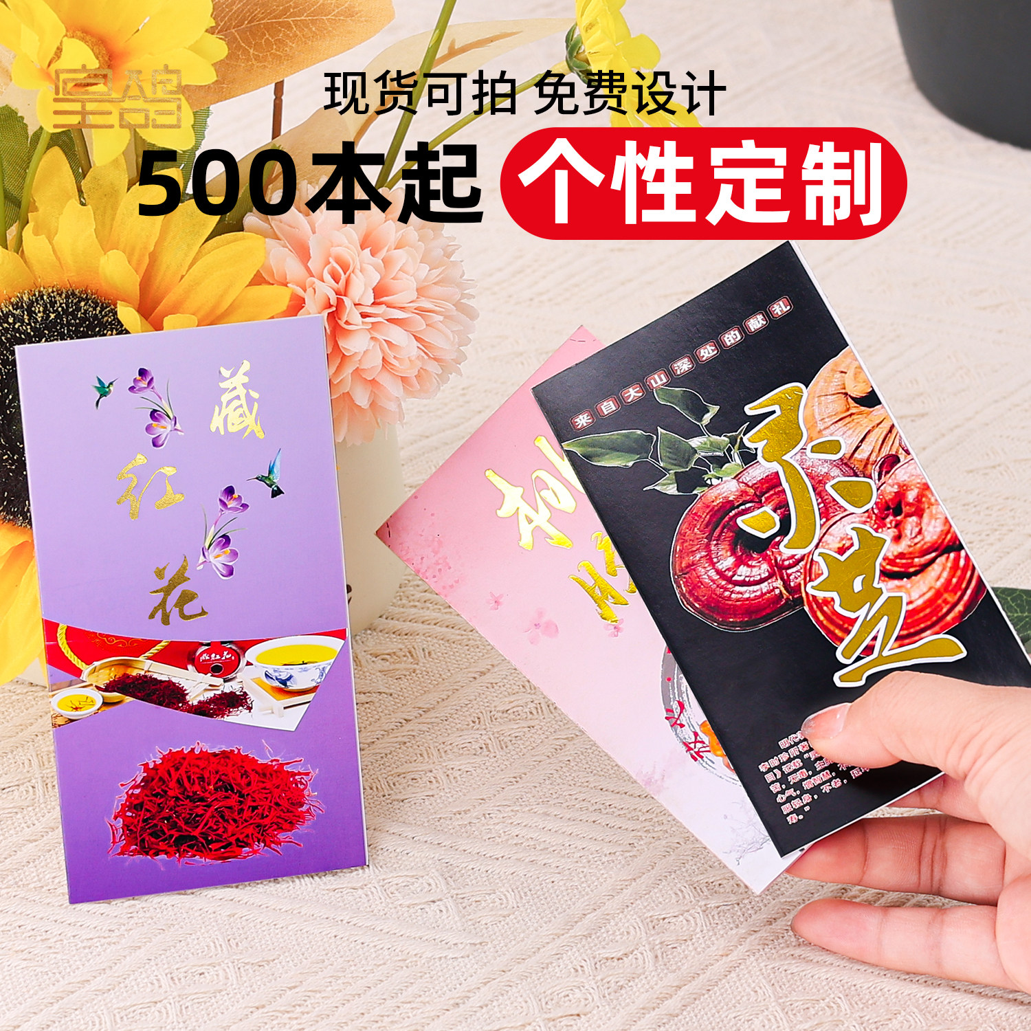 加厚双面印刷3折页燕窝虫草西洋参海参三七石斛灵芝说明书册子介绍宣传册定制 订做