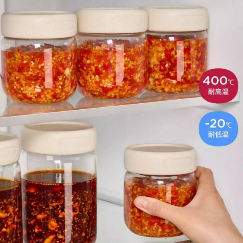 辣椒酱专用罐高硼硅玻璃装蒜蓉酱的罐子密封油罐空瓶子分装瓶冰箱