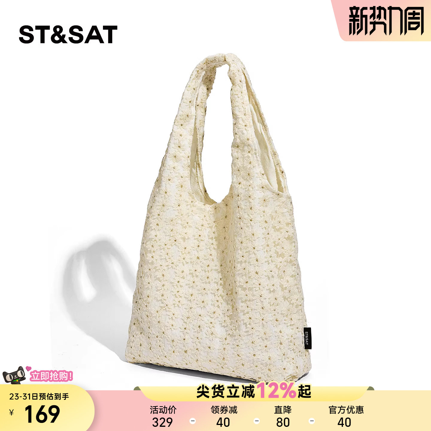 星期六碎花手提帆布包夏天包包女款大容量松弛感托特包通勤单肩包