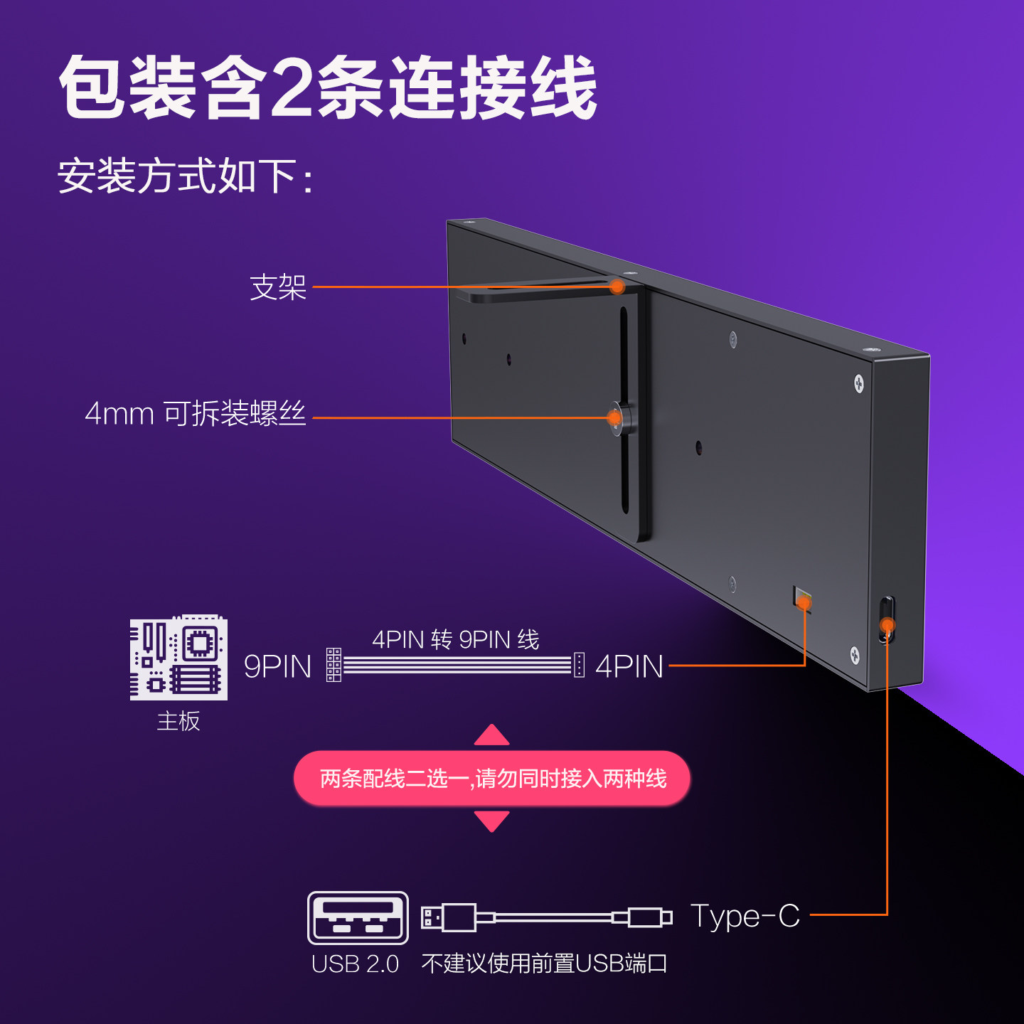 妙联宝D92机箱副屏电脑主机长条屏内置监控CPU温度显示桌面小屏幕