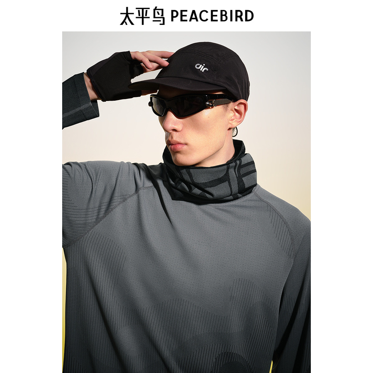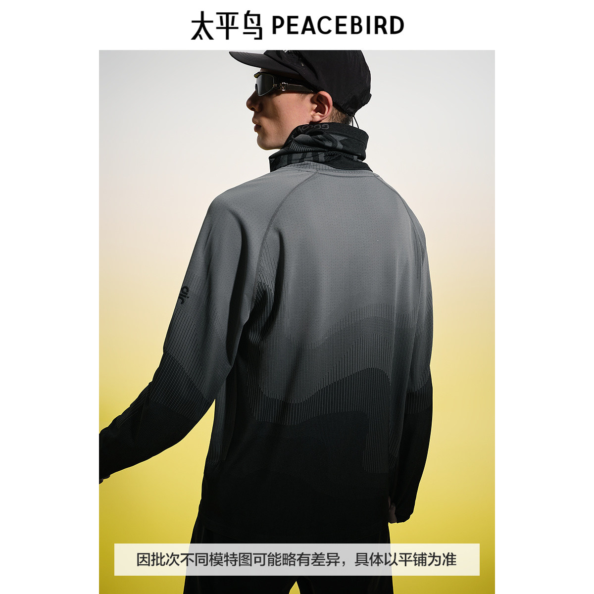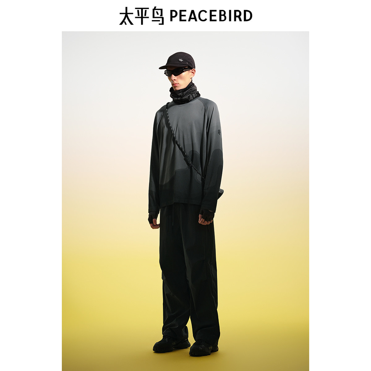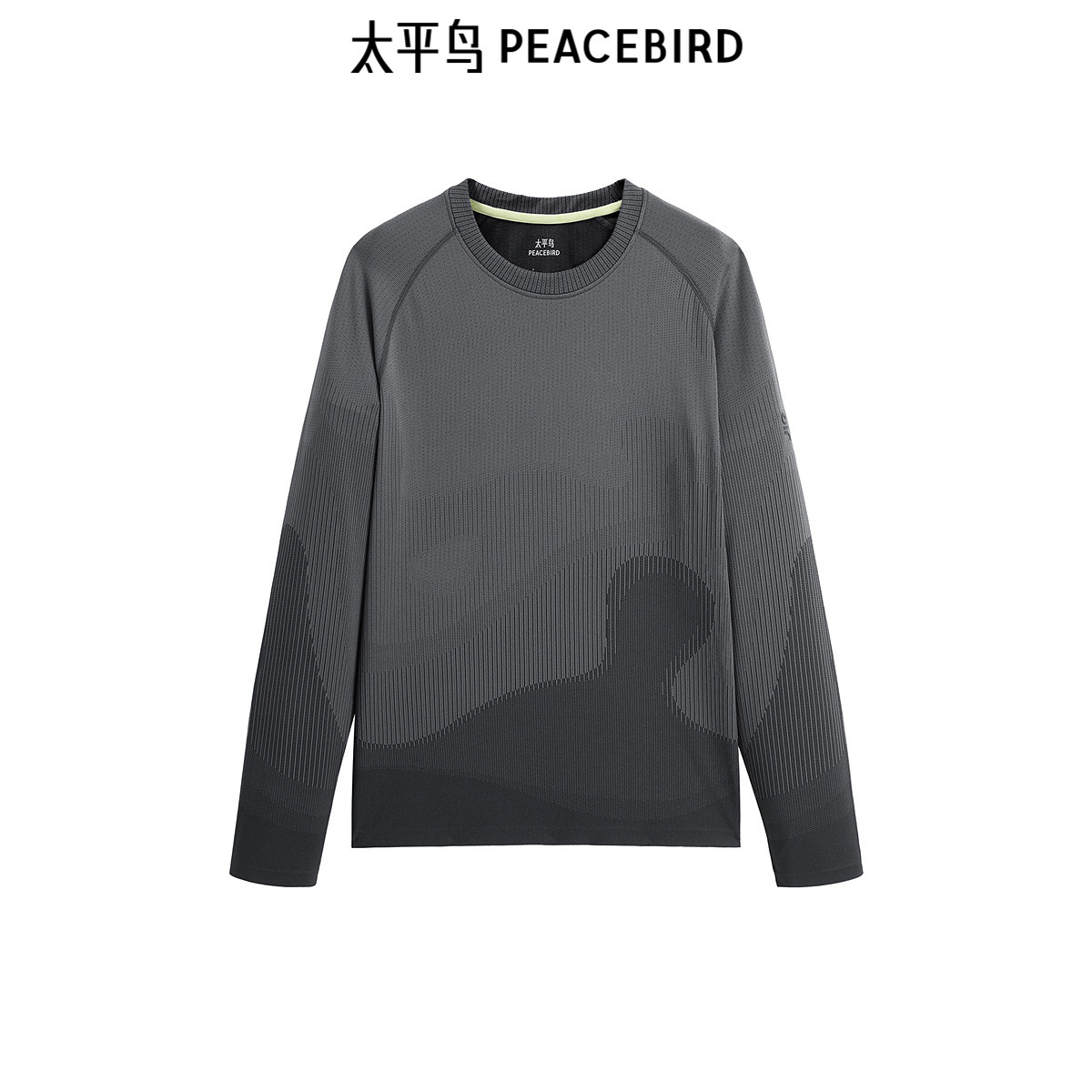 太平鸟男装圆领潮流长袖T恤秋季重磅渐变色提花打底体恤衫