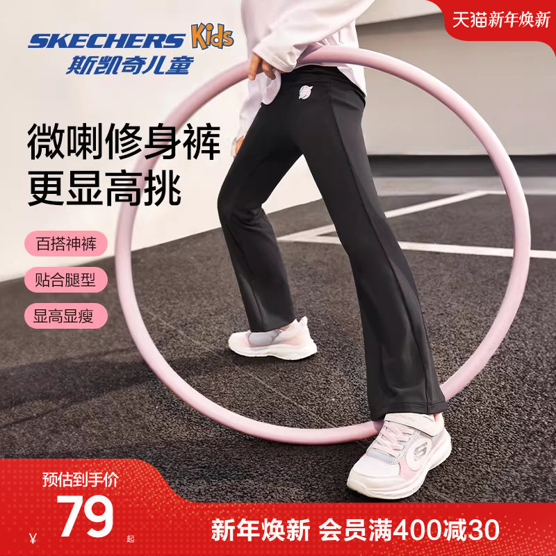 Skechers斯凯奇女童喇叭裤秋季儿童防晒运动裤修身百搭高弹微喇裤