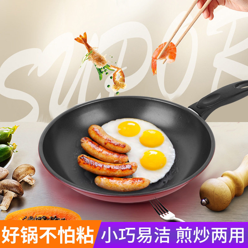 钛红芯控温平底锅不粘锅家用无涂层炒菜煎蛋牛排电磁炉专用深煎锅