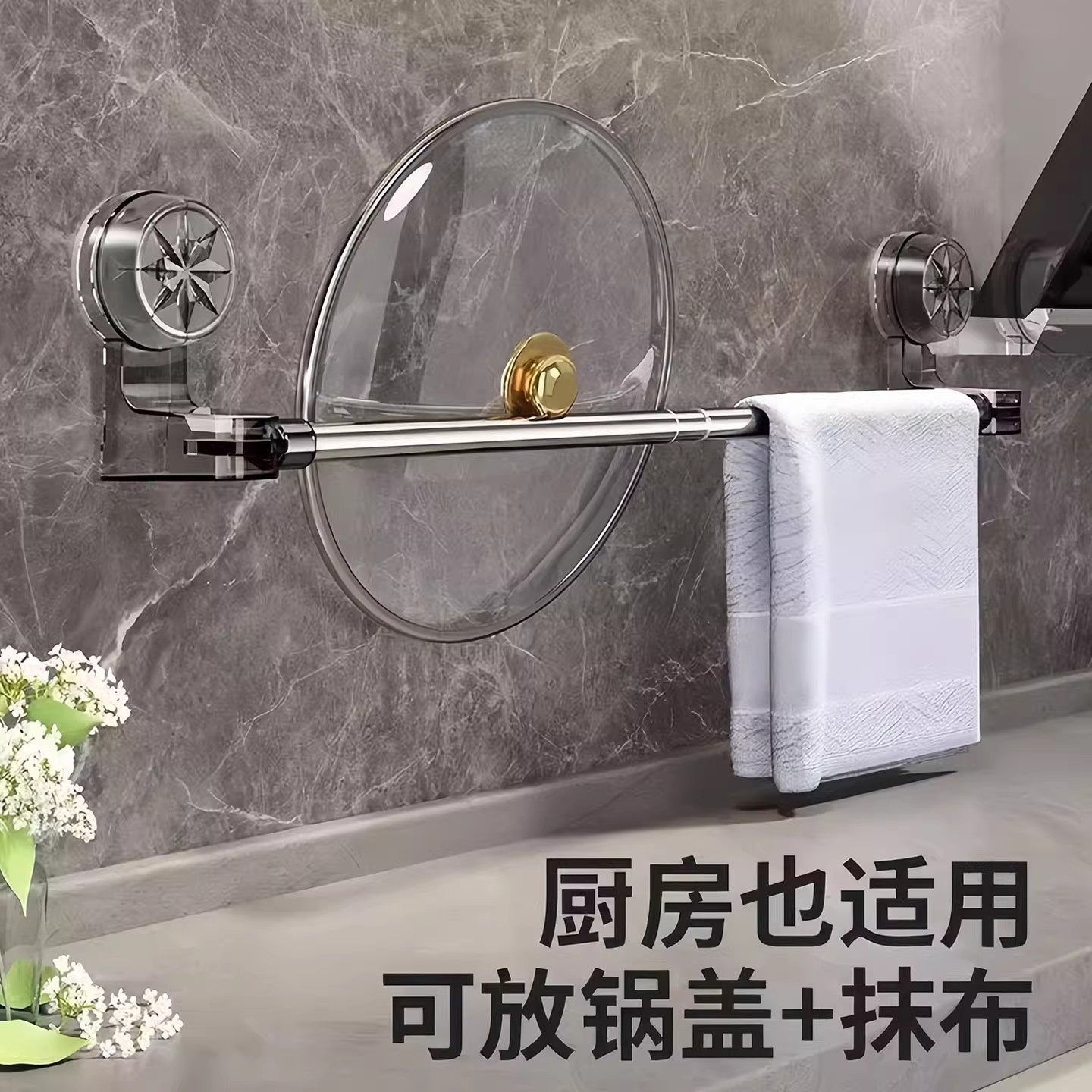 吸盘毛巾架可伸缩免打孔卫生间置物架 浴室拖鞋架浴巾杆毛巾杆