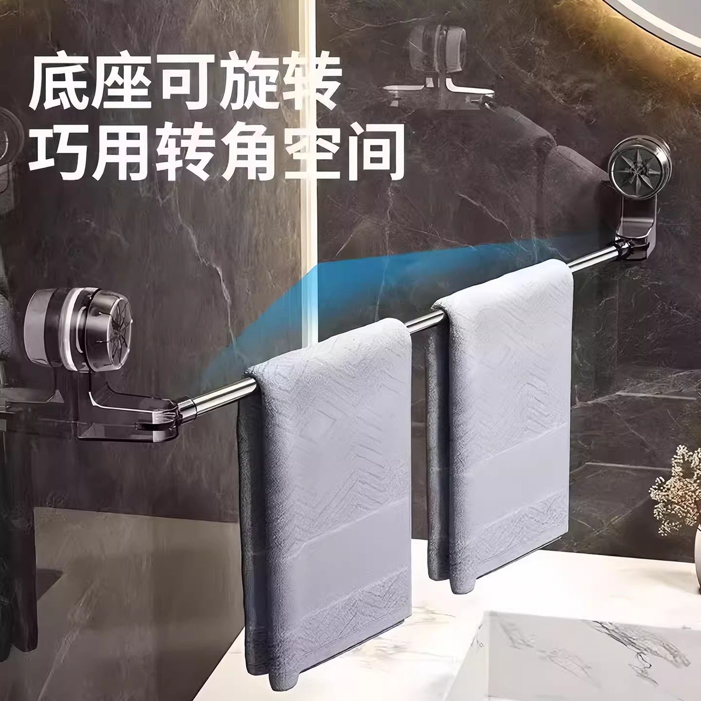 吸盘毛巾架卫生间免打孔浴室伸缩毛巾杆置物架洗手间浴巾收纳挂架