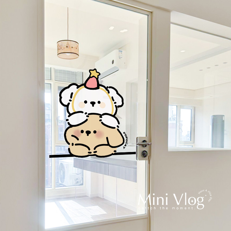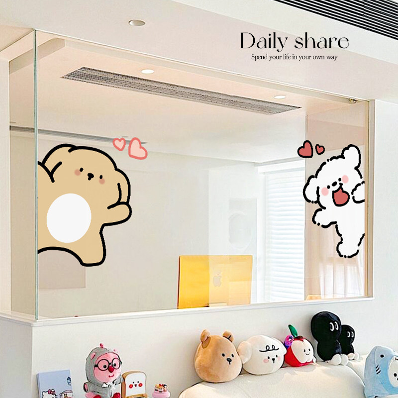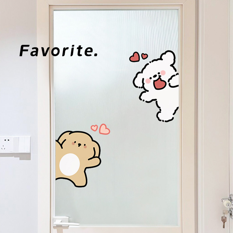 爱心小狗卫生间门贴情侣静电贴浴室厨房门玻璃贴纸创意遮丑贴画