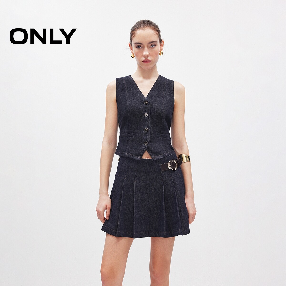ONLY2026春季新款活性染防走光短裤内衬A字牛仔百褶短裙半身裙女