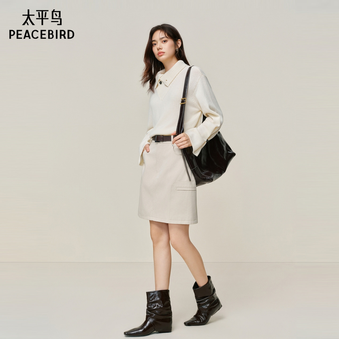 【所有女生的衣橱直播间】极尔斯 斜纹半身裙/高领T恤