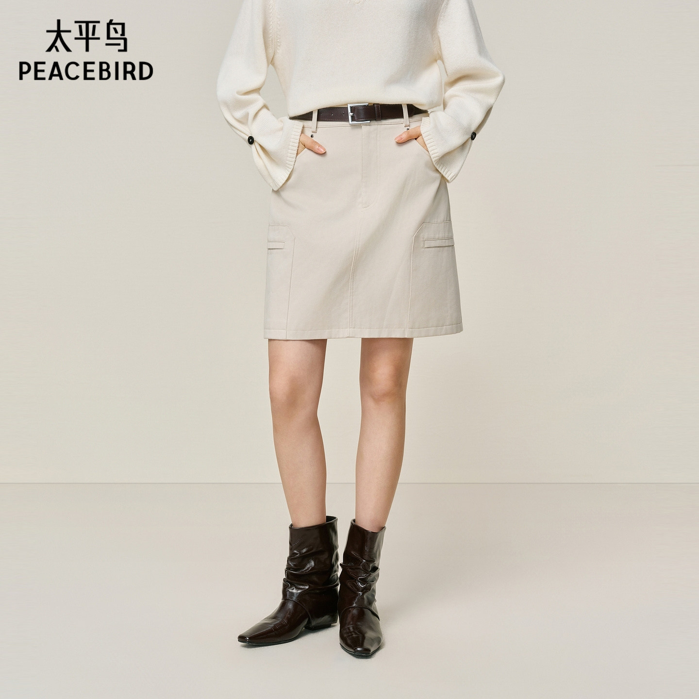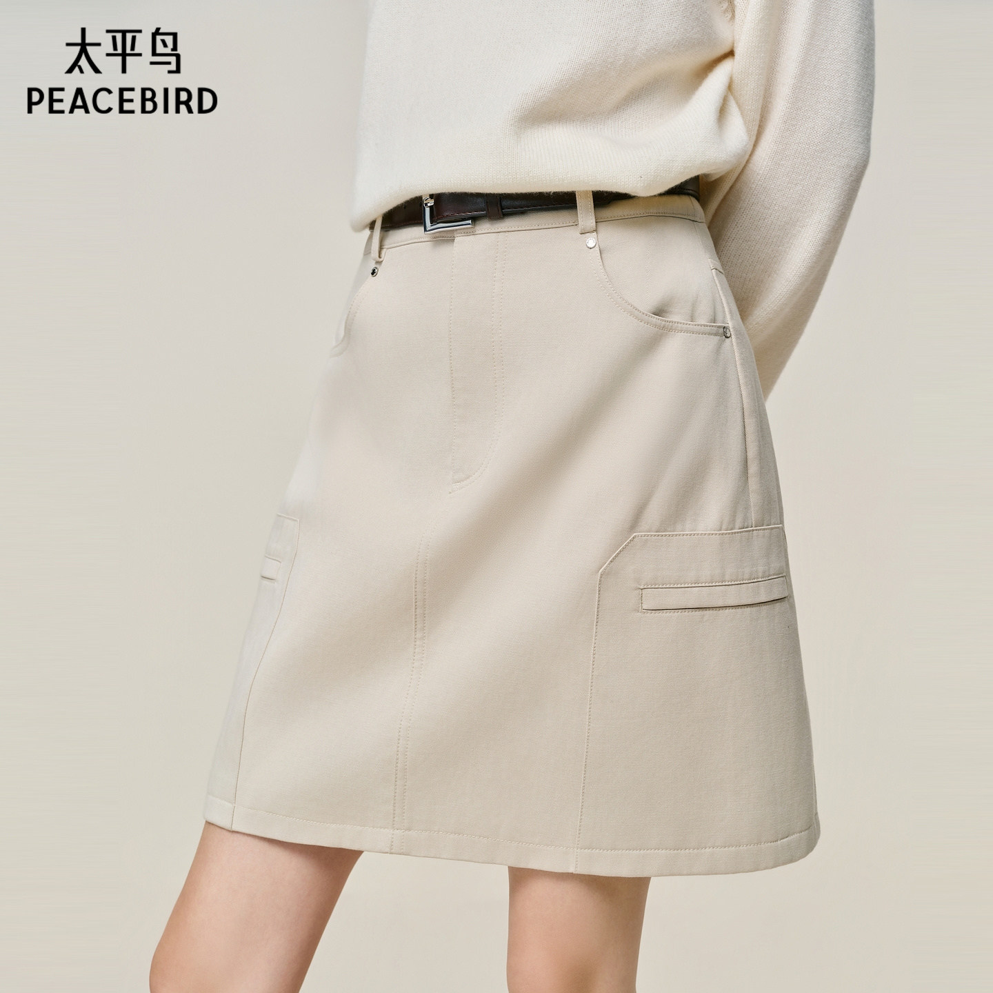 【商场同款】太平鸟白色莱赛尔仿牛仔A字裙品质通勤短裙A1GEF4437