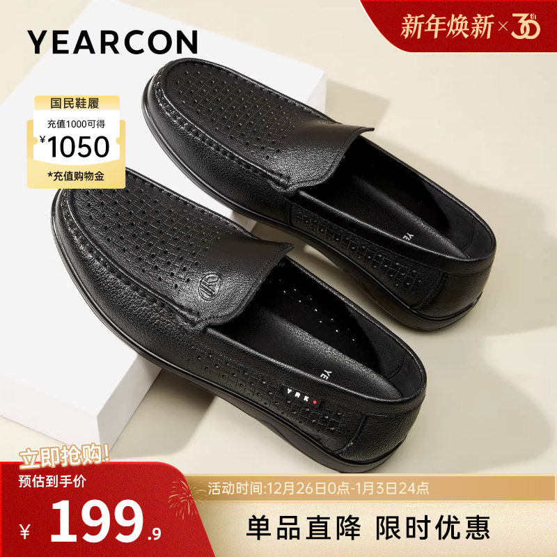 意尔康男鞋2025夏季软底爸爸鞋真皮休闲皮鞋男士透气镂空皮凉鞋