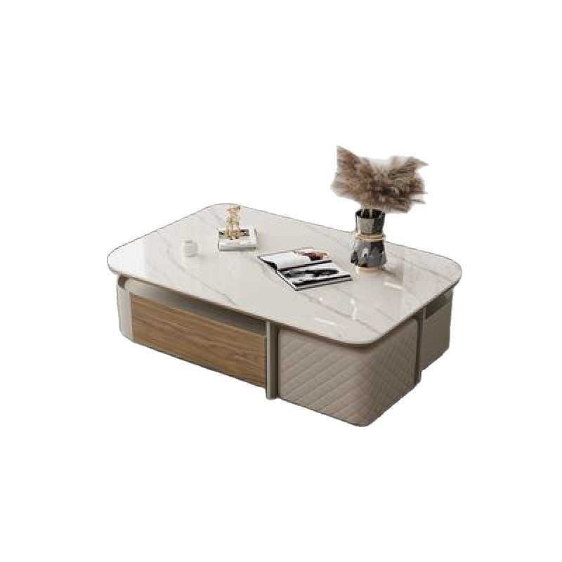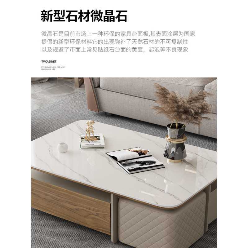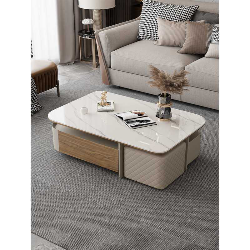 现代极简创意大小户型客厅家用长方形带凳子茶几微晶石台面茶几