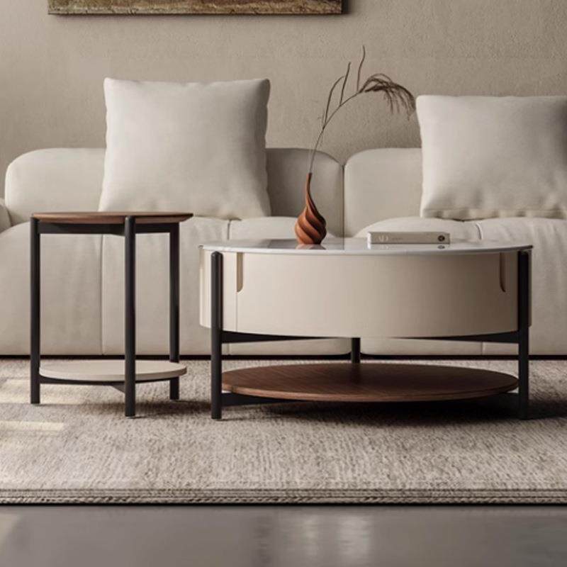 异形茶几组合客厅奶油风家用现代简约设计师极简马鞍皮微晶石茶几