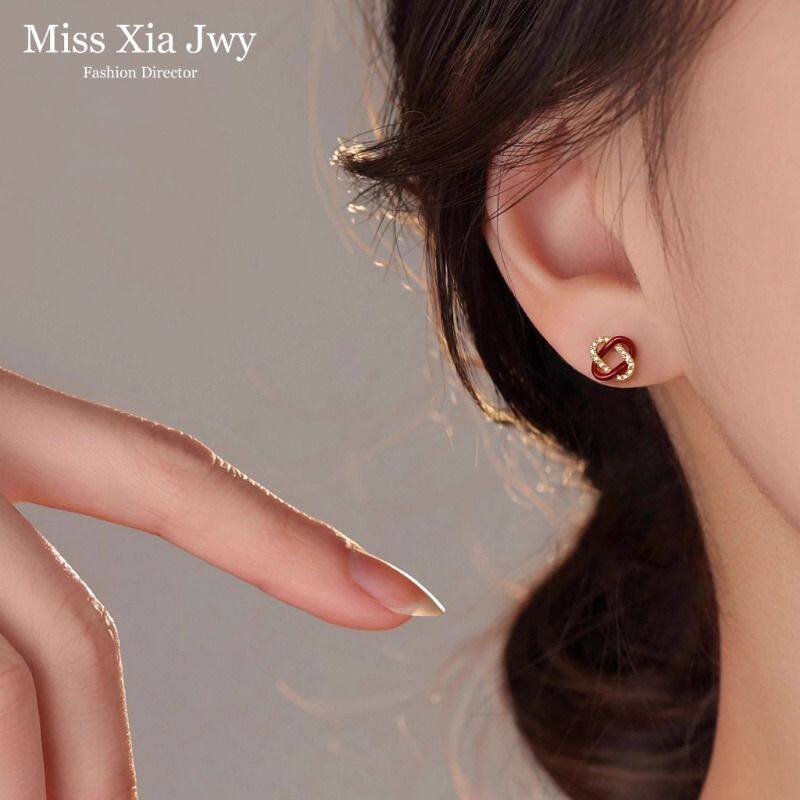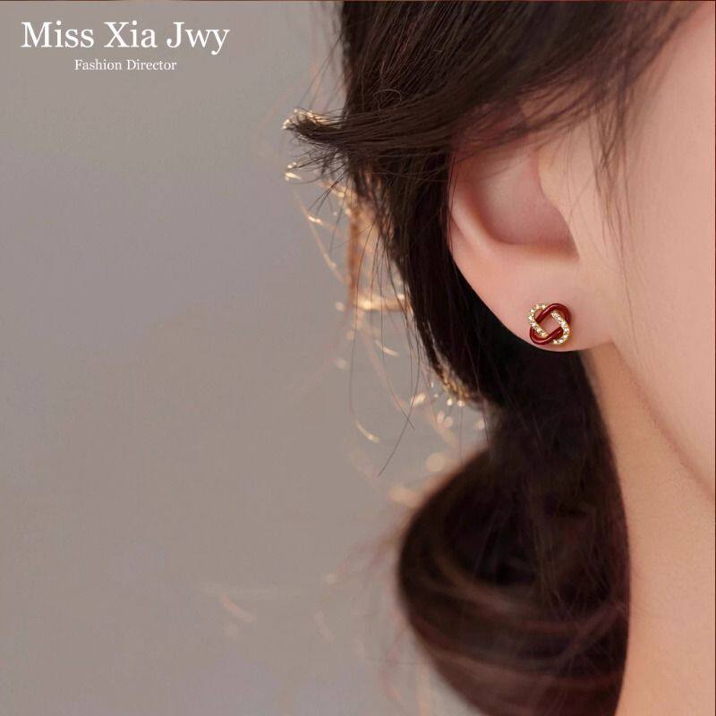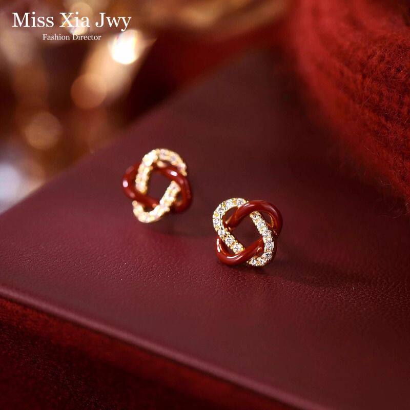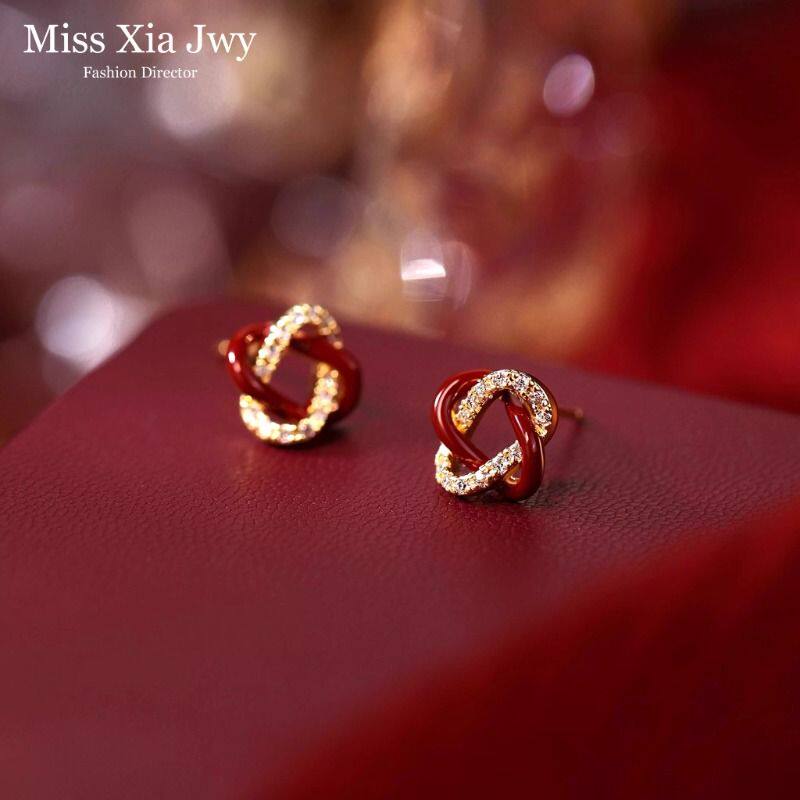 红色同心结耳钉高级感礼物耳环2026马年新年女金色耳饰本命年饰品