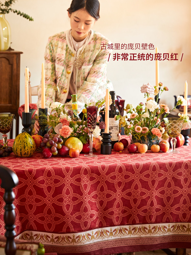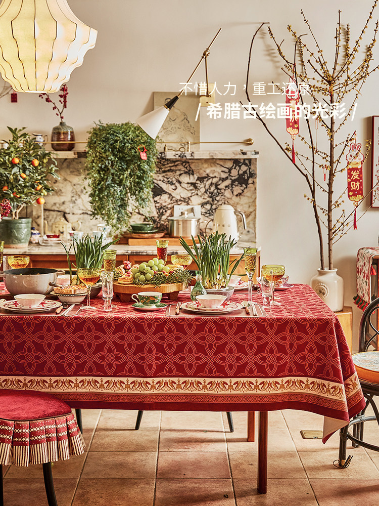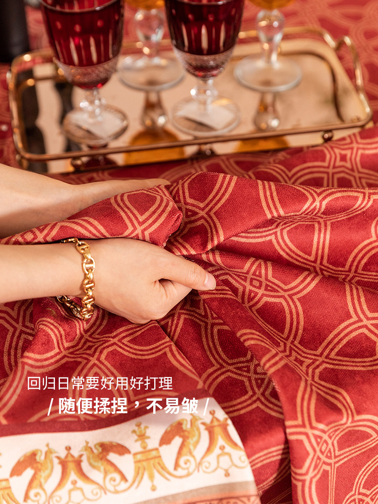 美式节日氛围感方形餐桌台布茶几盖布定制
