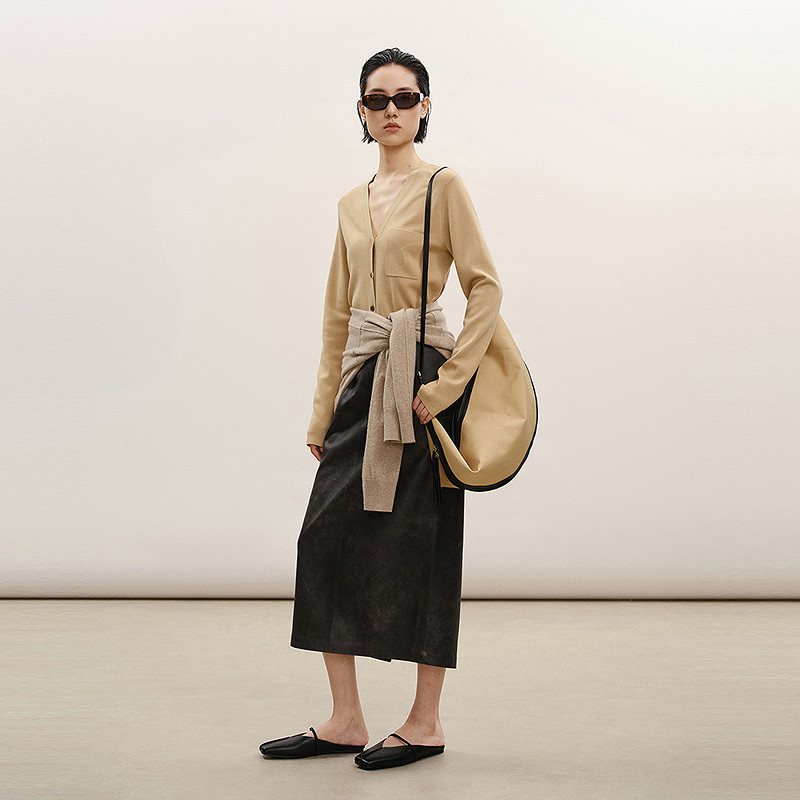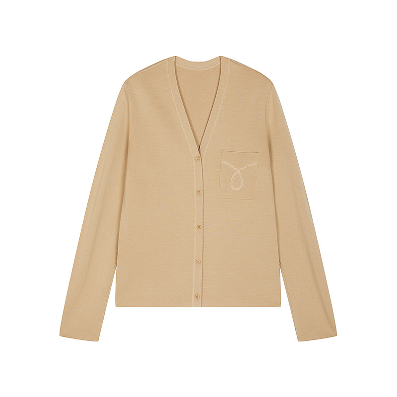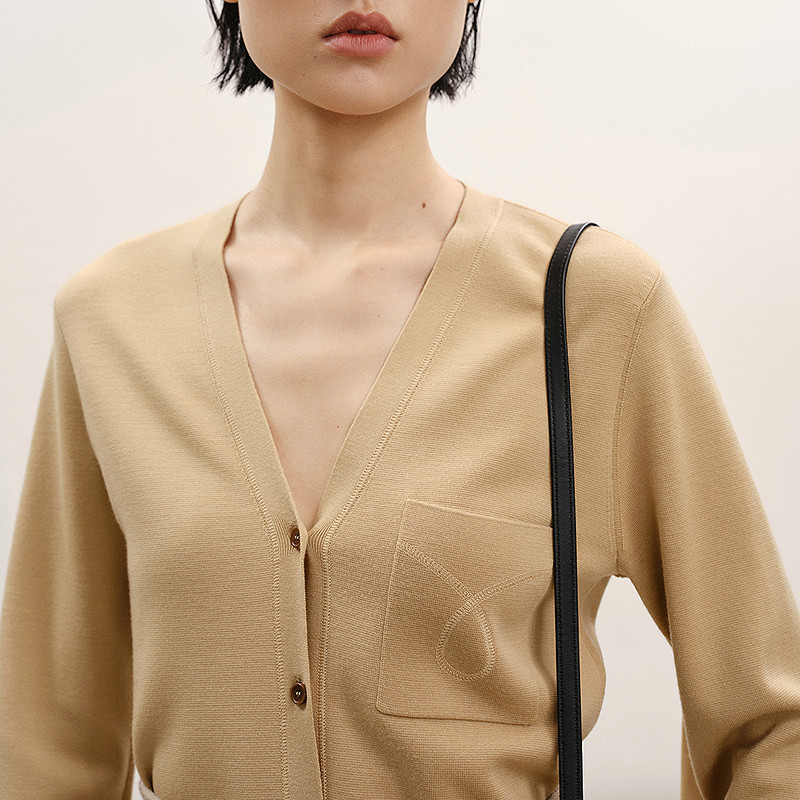 【商场同款】LESS2026春新款美丽诺羊毛V领开襟薄针织衫2Q2314040