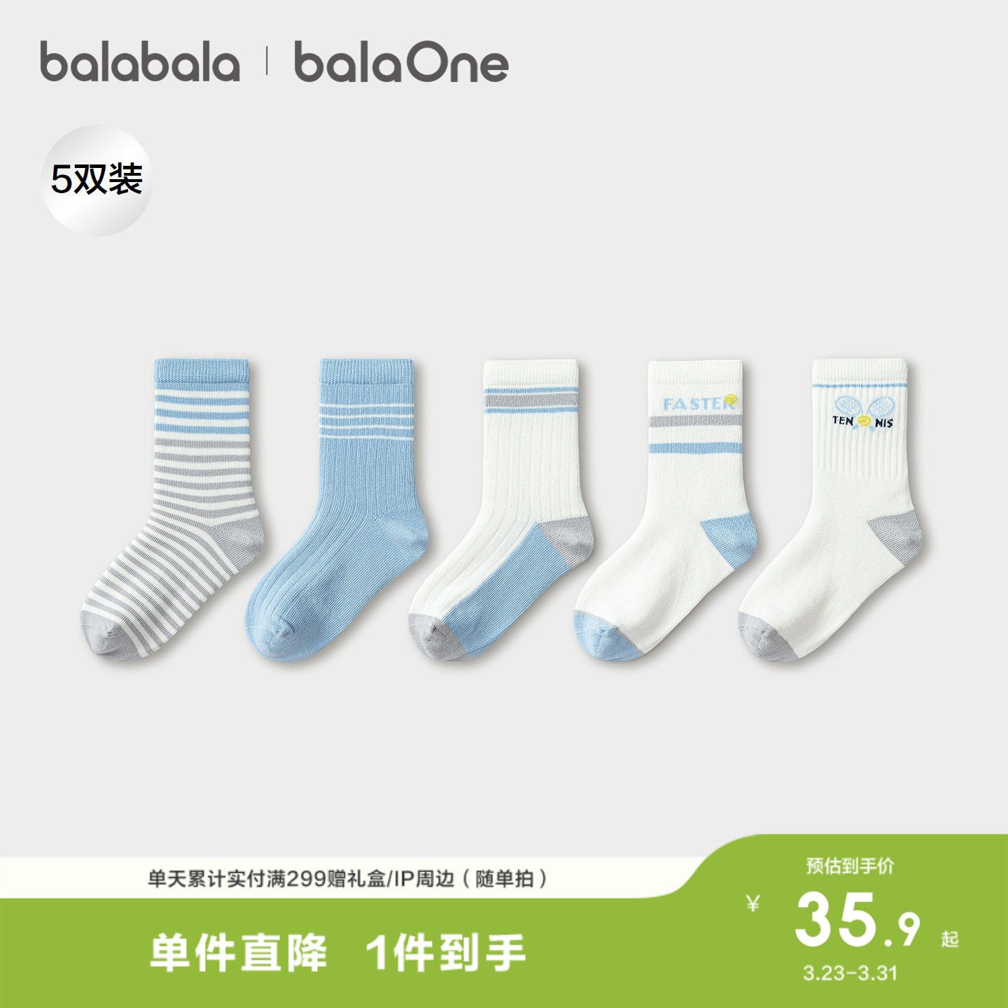 巴拉巴拉儿童袜子春秋男童棉袜中筒袜撞色舒适柔弹亲肤提花五双装