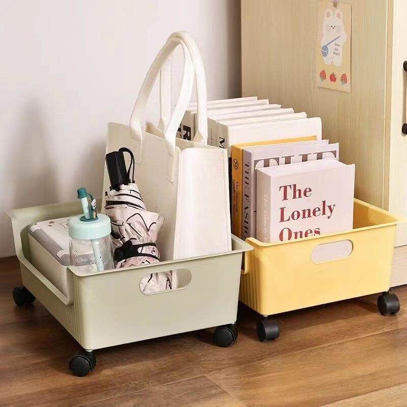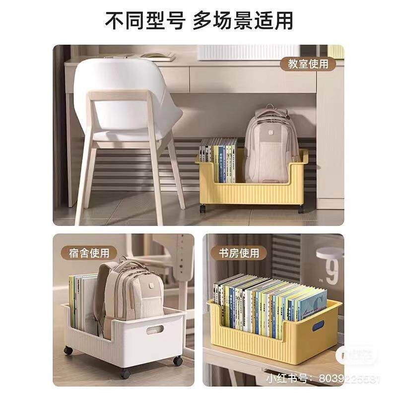 可移动桌下书本书包收纳箱书箱学生教室用桌面放书收纳盒书架带轮