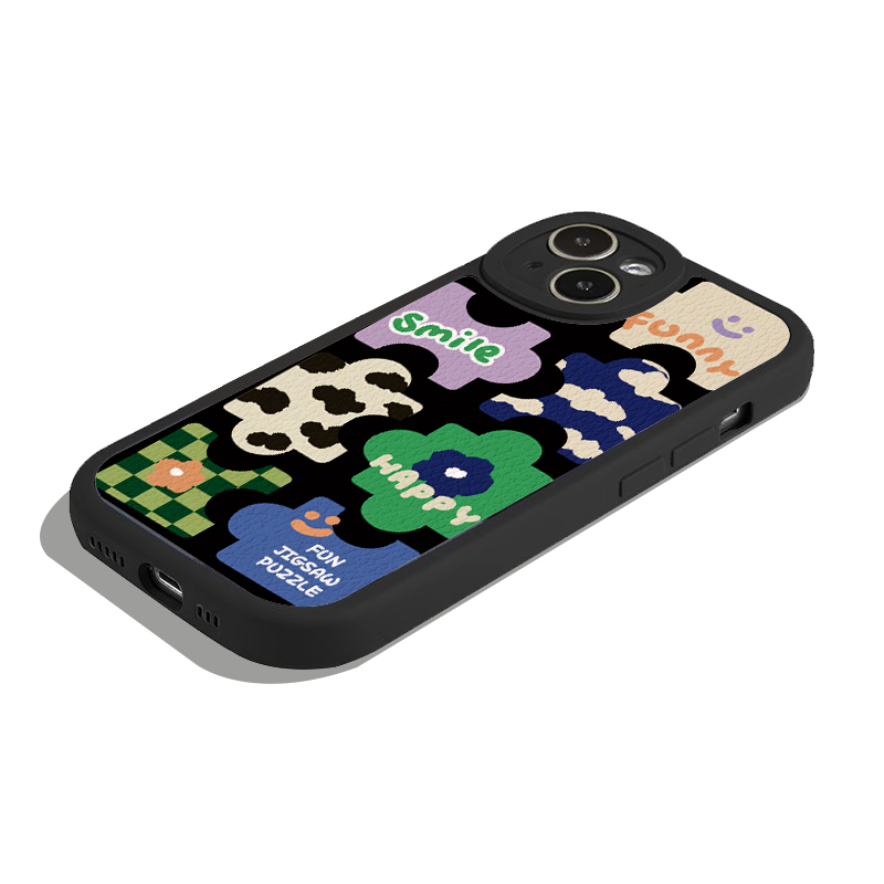 ins拼接清新可爱黑色小羊皮全包手机壳适用苹果17nova14华为p70/mate70小米15reno14vivo30荣耀300iPhone15