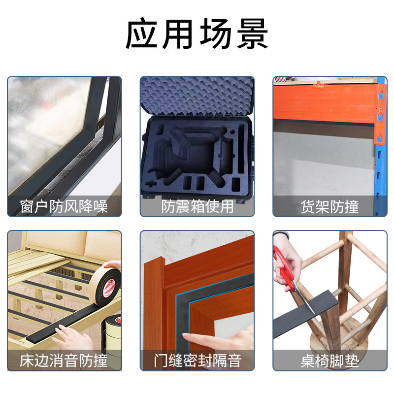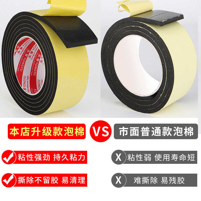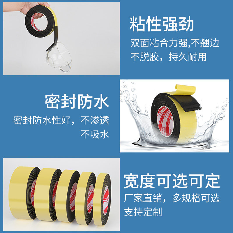 加厚EVA黑色单面海绵胶带门窗缝隙密封胶条保温泡沫垫条泡棉防撞缓冲汽车隔音机器配件防震建筑填充自粘胶贴