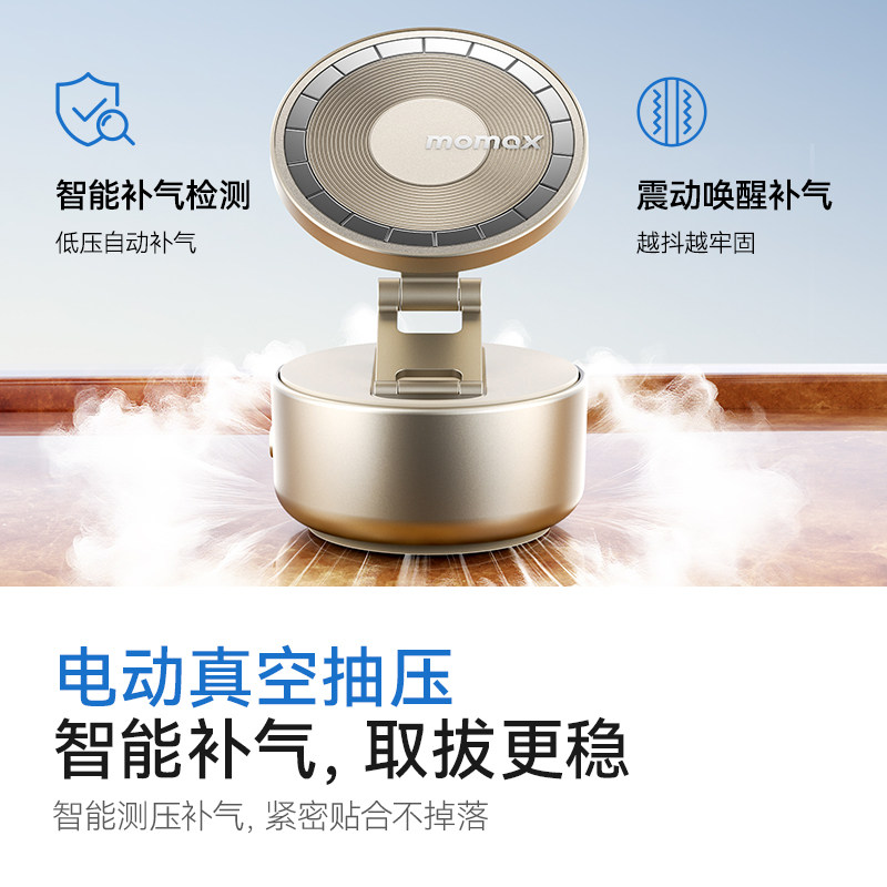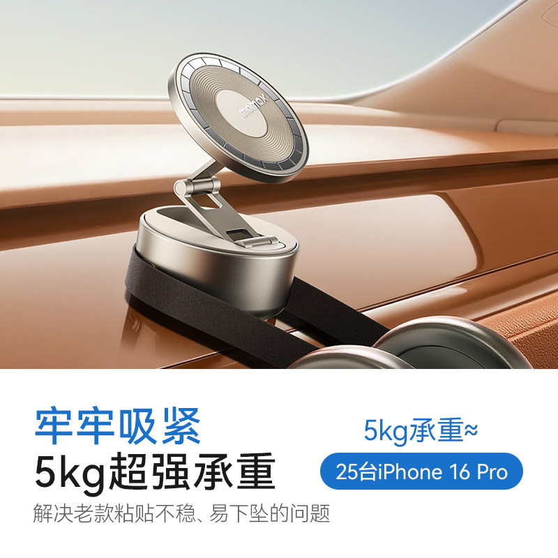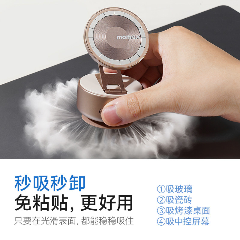 MOMAX摩米士手机支架磁吸真空吸附电动吸盘可折叠旋转多功能便携汽车中控台导航桌面固定追剧支撑架2025新款