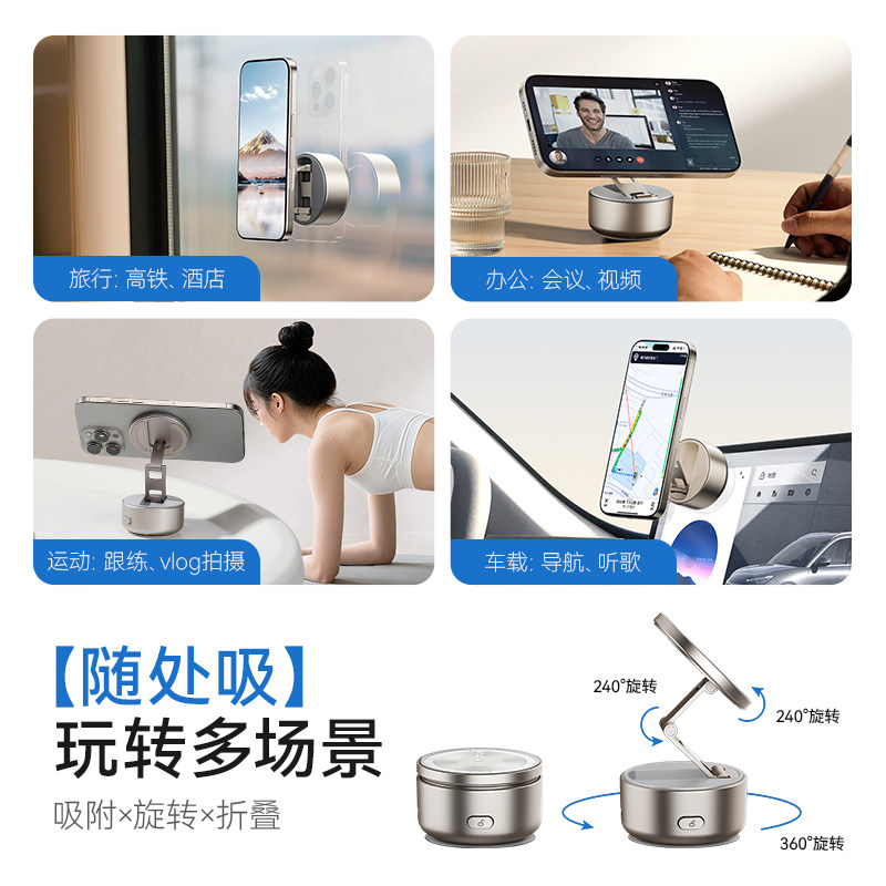 真空吸附磁吸车载手机支架2025新款吸盘车内导航手机架magsafe无线磁吸伸缩折叠便携架子墙壁通用神器