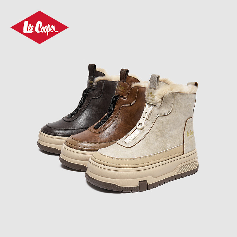 Lee Cooper棉鞋女2025秋冬新款短筒加绒保暖雪地靴厚底东北棉鞋女