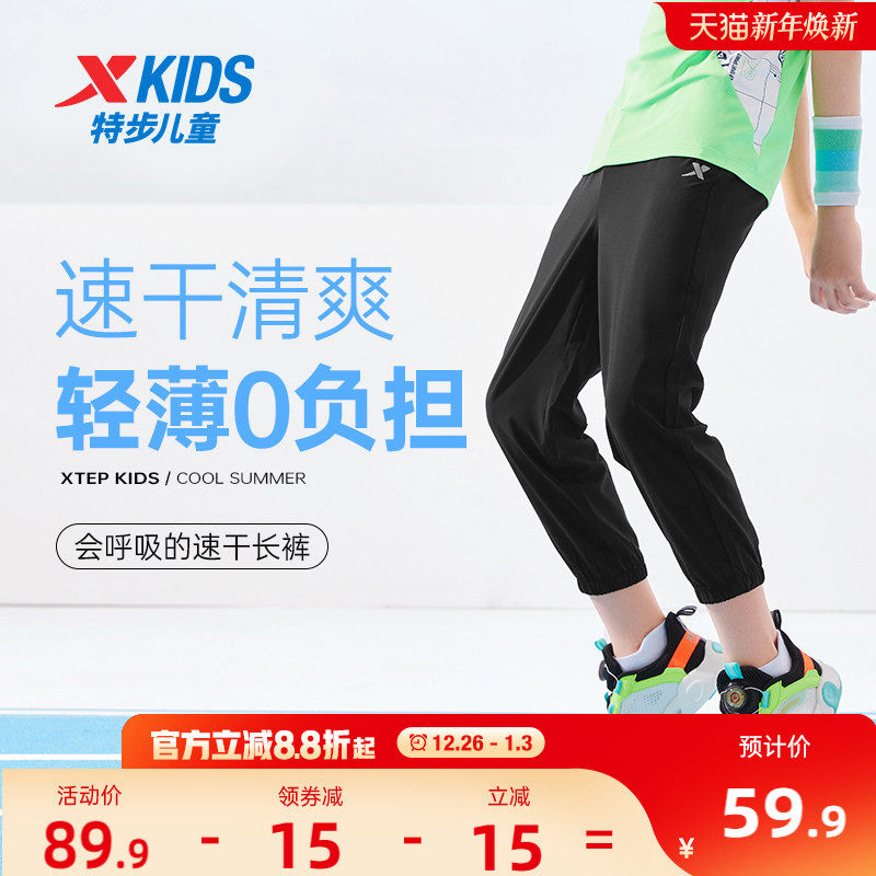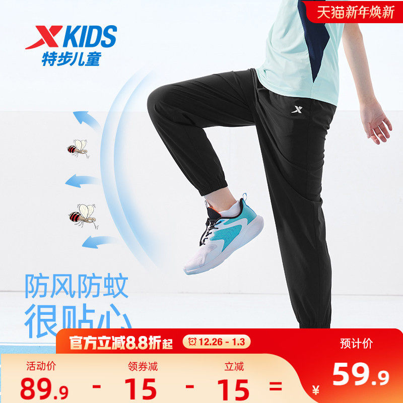 特步童装男童裤子速干裤夏装大童休闲裤防蚊裤秋冬薄款儿童运动裤