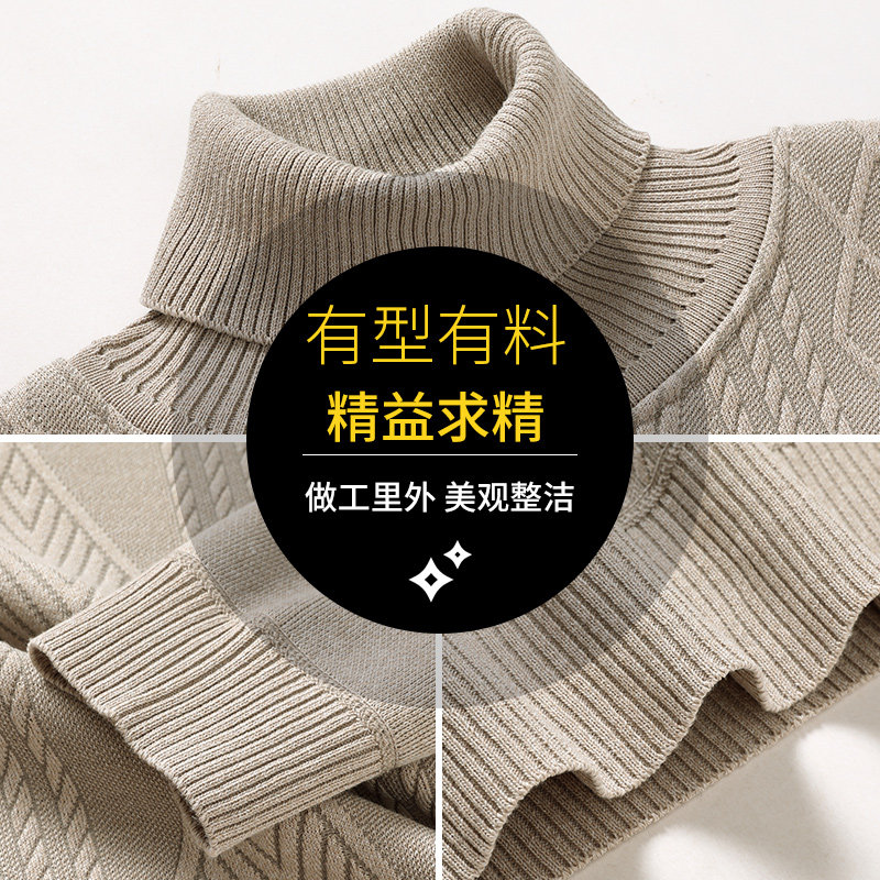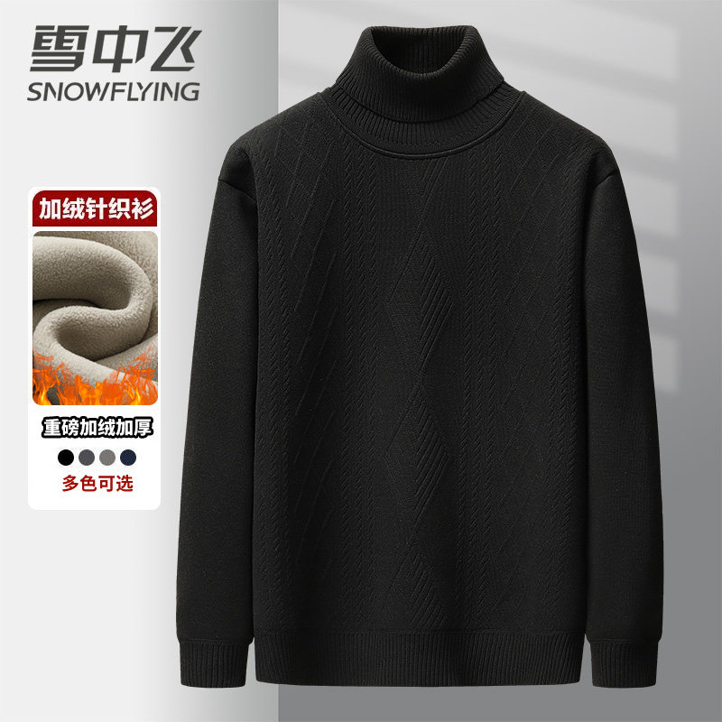雪中飞-冬季针织衫毛衣翻领高领加绒加厚打底男士提花毛衣爸爸装