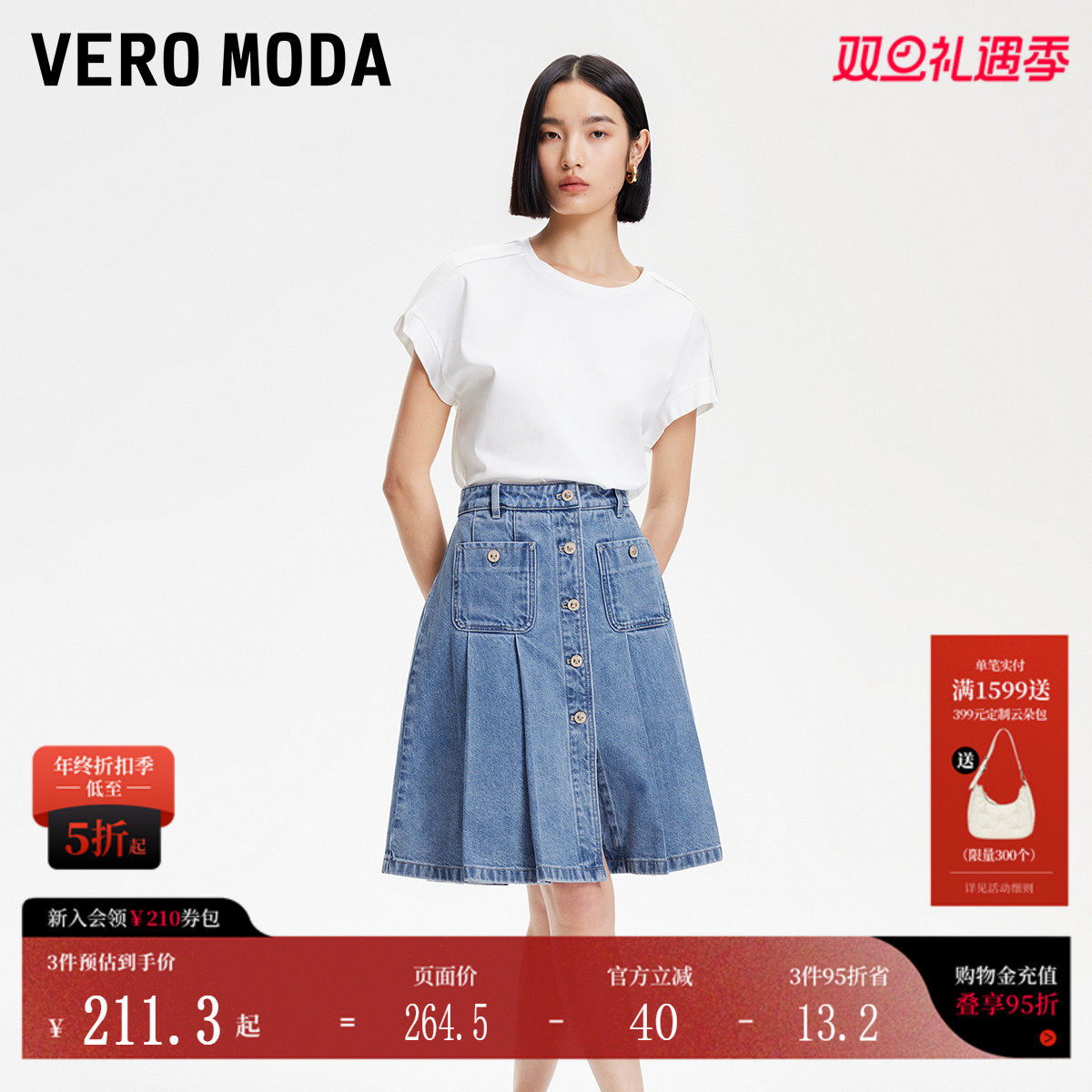Vero Moda半身裙女2025夏季新款单排扣门襟百褶牛仔纯棉325137008