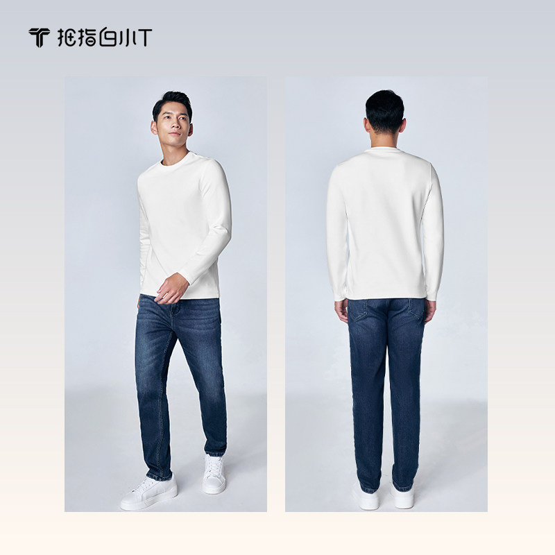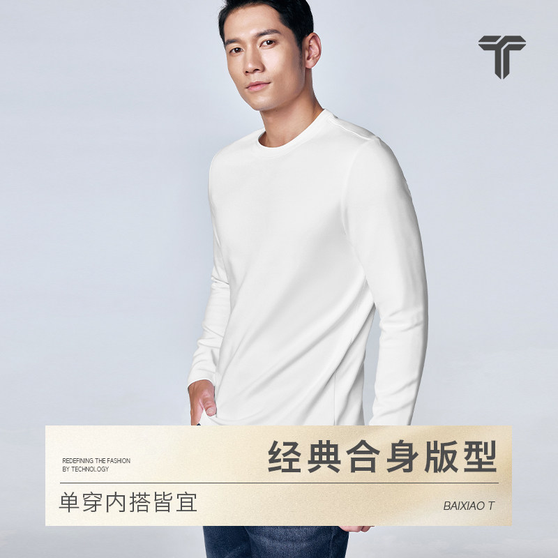 拇指白小T秋冬款男士热力加绒长袖T恤保暖内搭打底舒适透气体恤衫