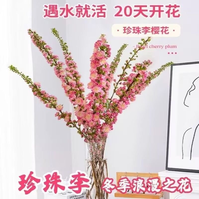 珍珠李干枝遇水开花鲜枝水培鲜花植物室内好养耐寒热年宵花卉重瓣