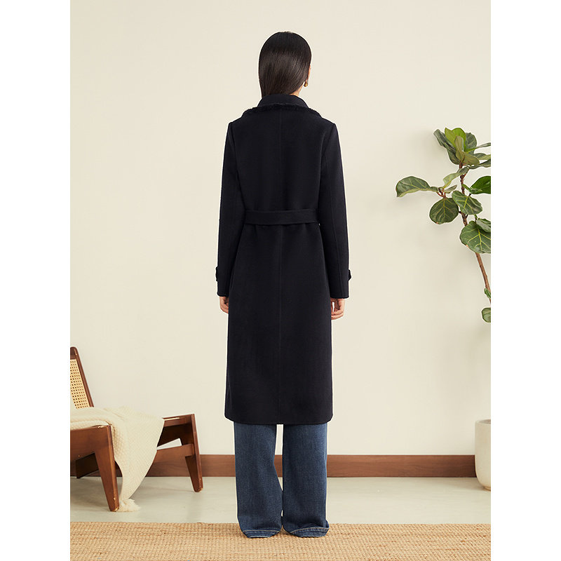 YINER音儿专选2025冬季新款水貂毛条装饰羊毛羊绒混纺双面呢大衣