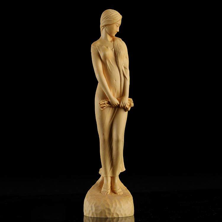 乐清黄杨木雕居家装饰人物摆件雕刻雕塑木质工艺美女花样年华