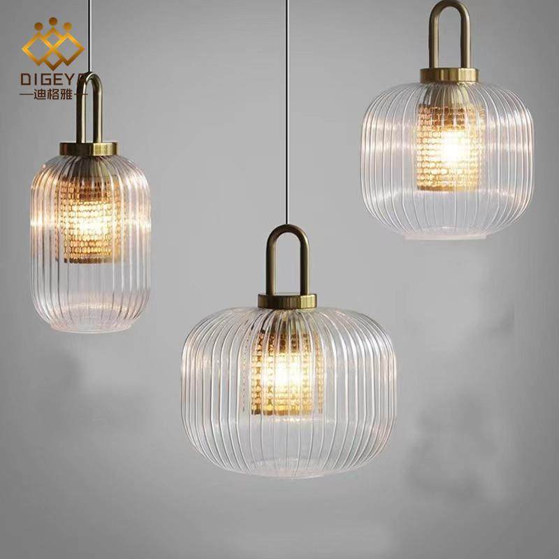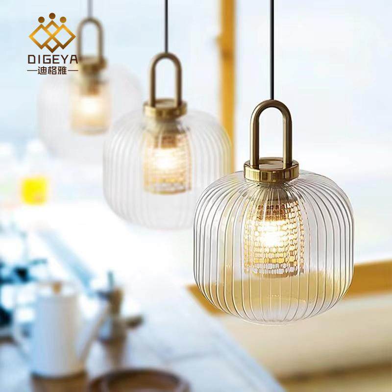 北欧后现代简约餐厅吧台吊灯清光条纹玻璃装饰氛围南瓜灯饰照明