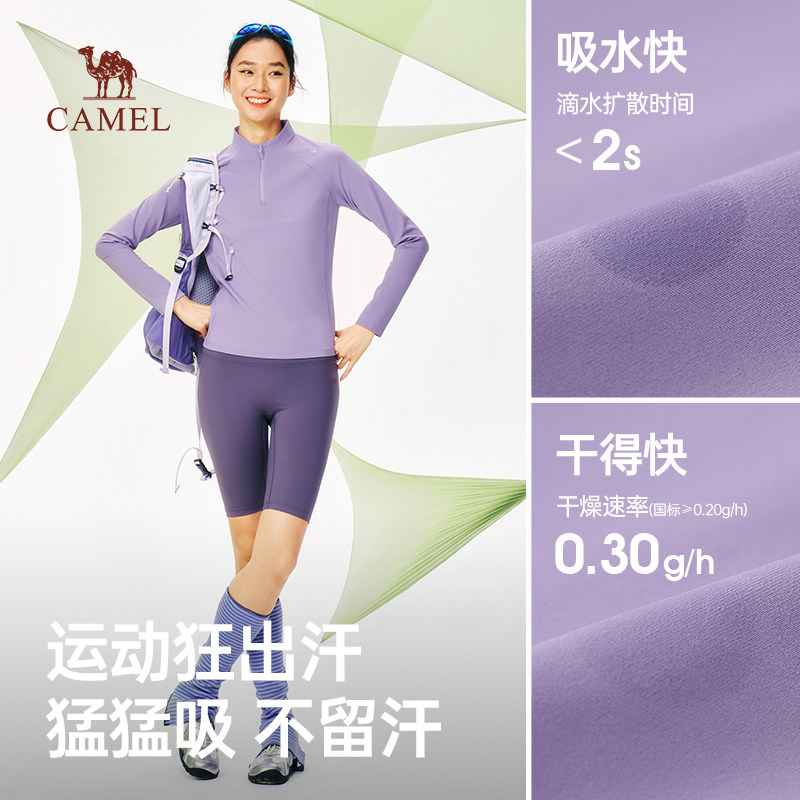 骆驼女装运动速干衣2026春季新款立领长袖T恤打底衣户外登山上衣