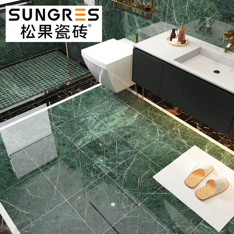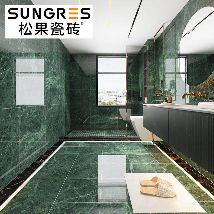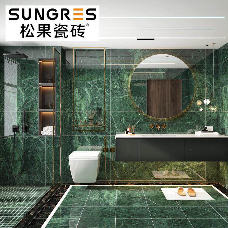 现代简约绿色通体大理石瓷砖深色卫生间厨房墙砖地砖400 800