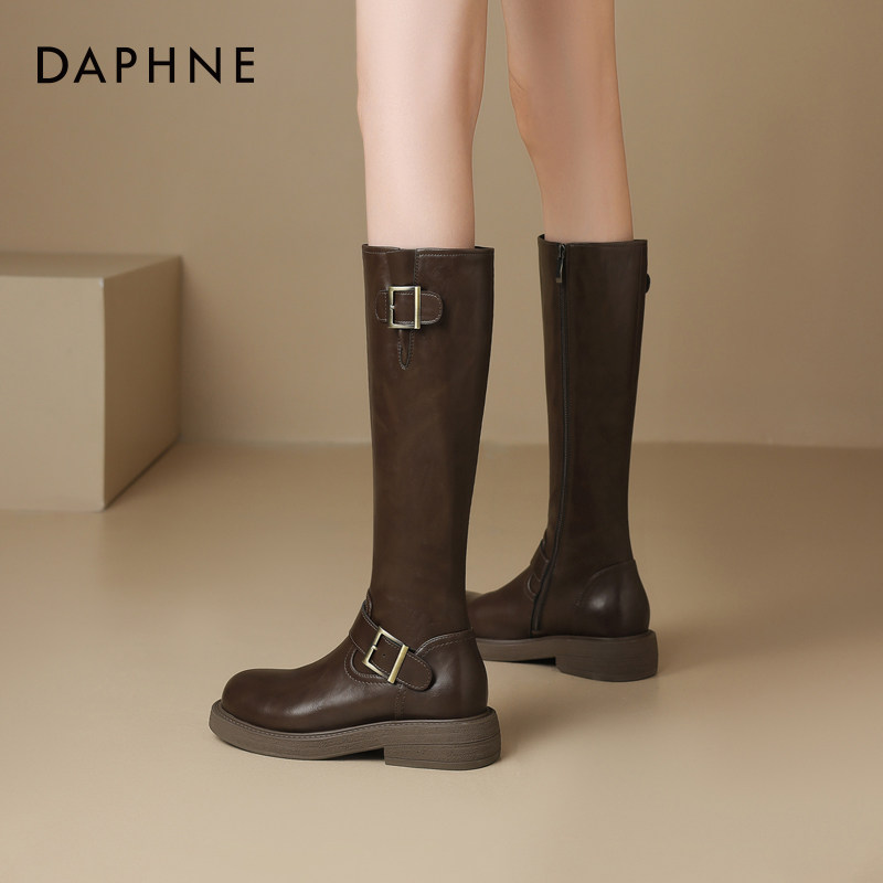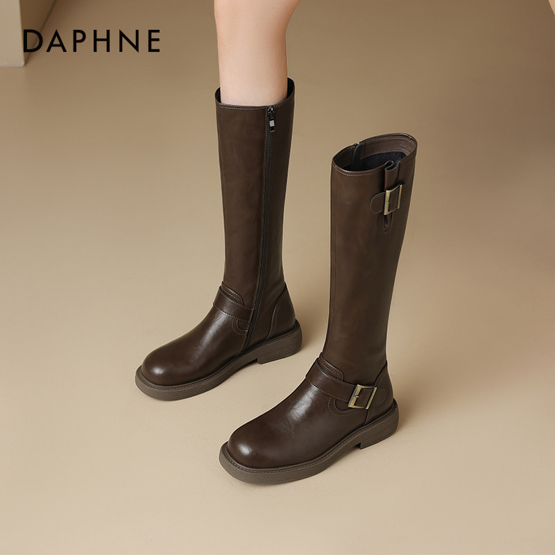 达芙妮靴子女款长筒靴2026新款春季长靴平底靴鞋子春款高筒骑士靴