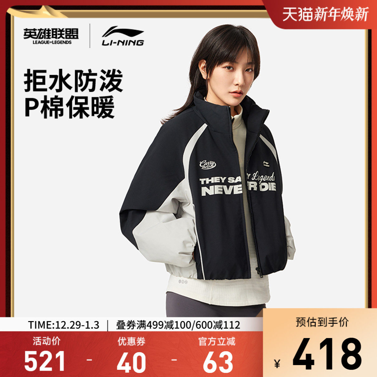 李宁 x LPL联名系列短款棉服百搭女士官方新款宽松上衣冬季运动服
