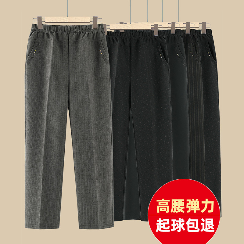 雅鹿妈妈裤子春季薄款直筒裤中老年女高腰2026新款休闲女裤小个子