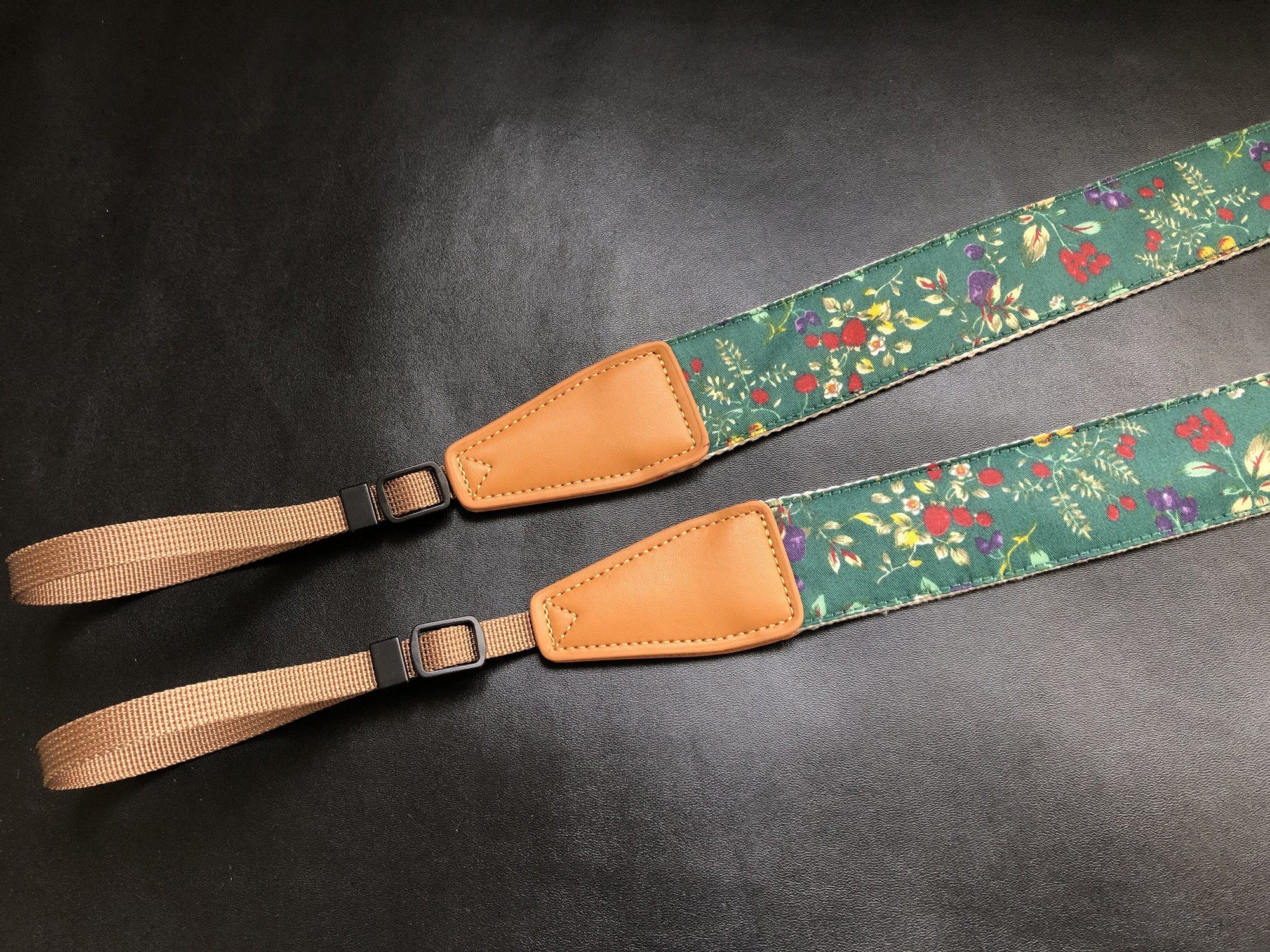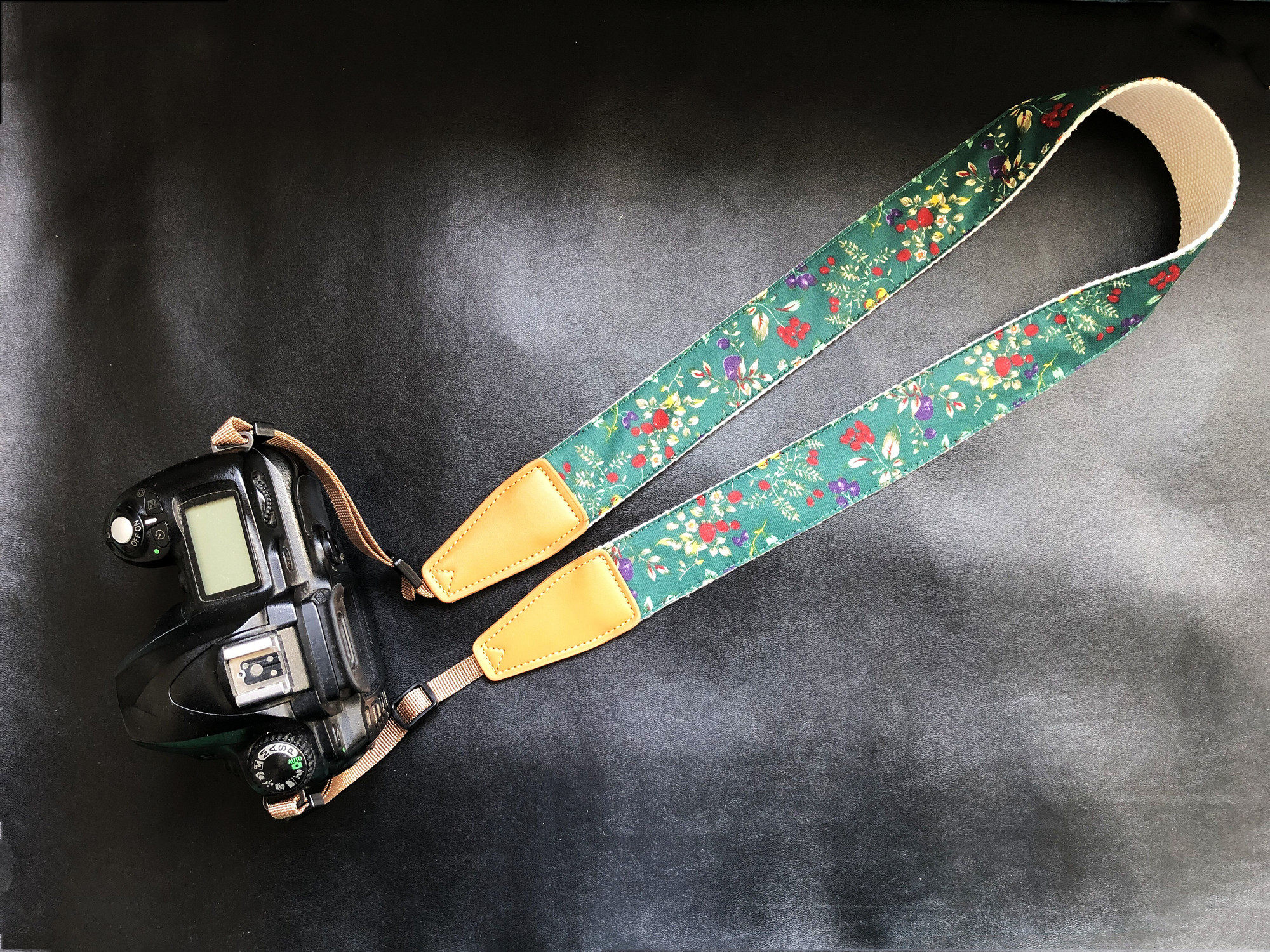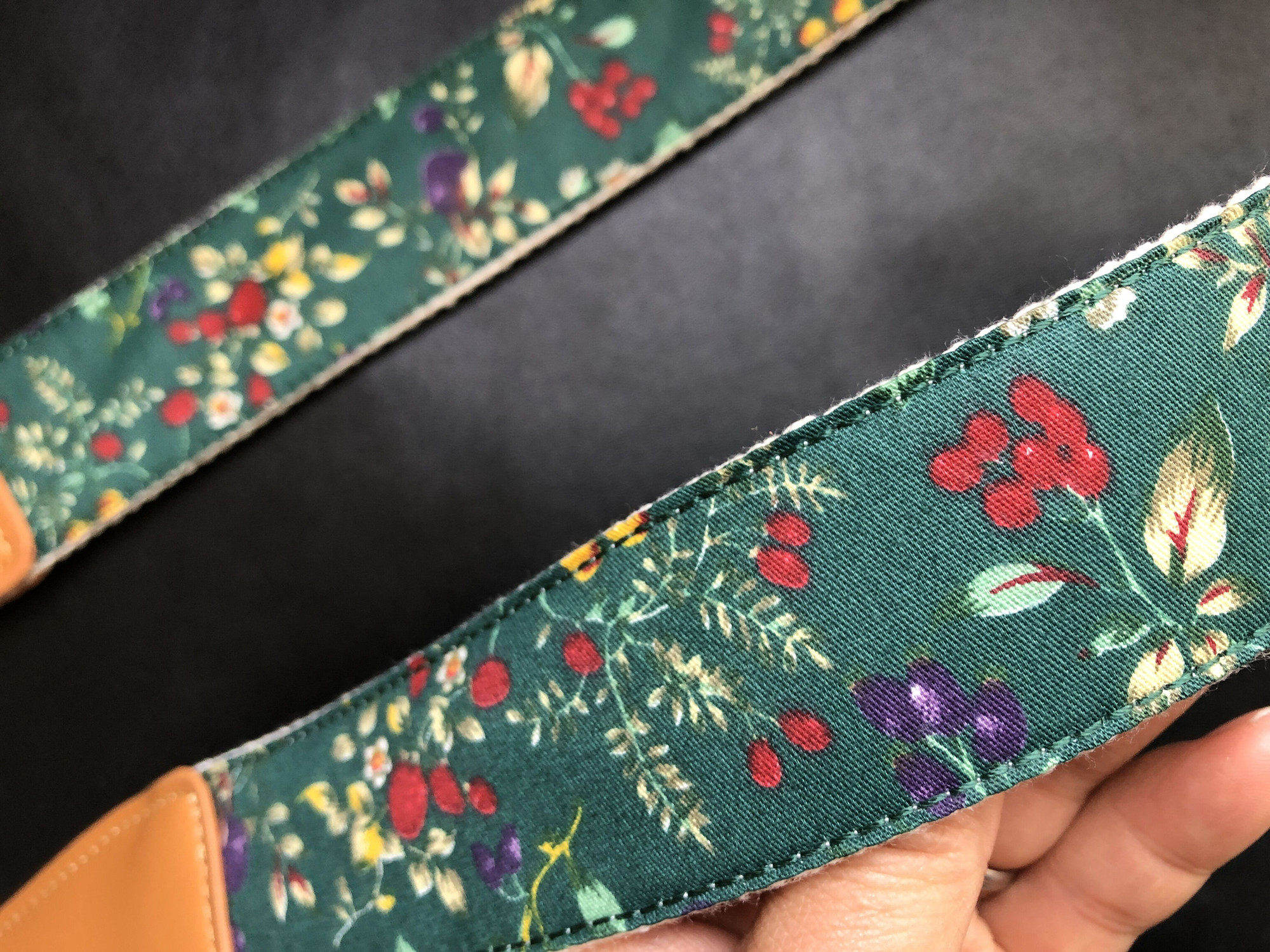 纯手工进口面料原创纯棉复古绿色浆果通用相机背带camera straps