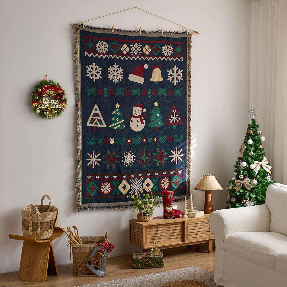 圣诞节挂毯房间布置墙面装饰背景布棉纱线毯沙发巾盖毯露营毯挂布
