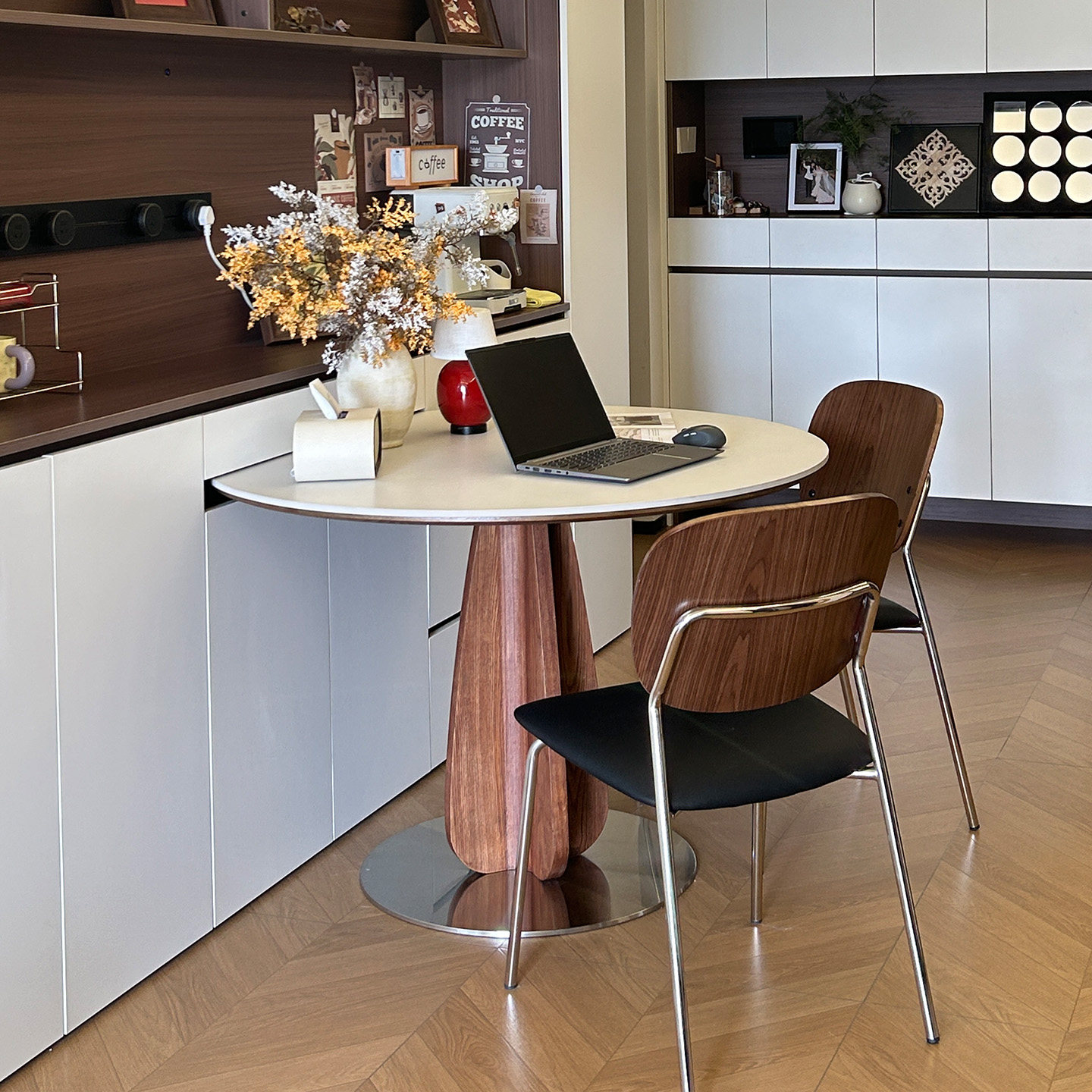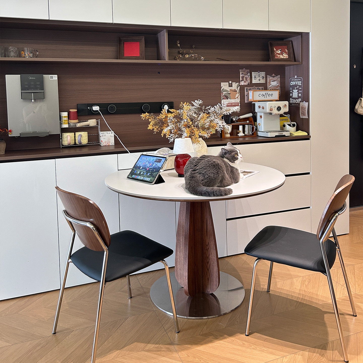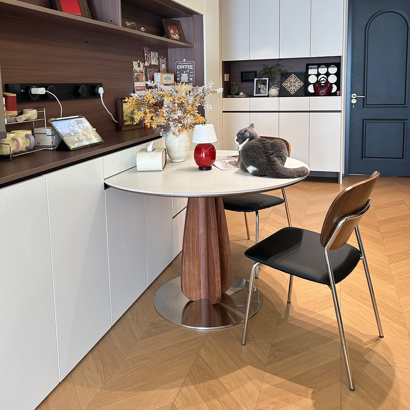 奥古斯特哑光岩板餐桌小户型中古风可嵌入餐边柜新款圆形实木餐桌
