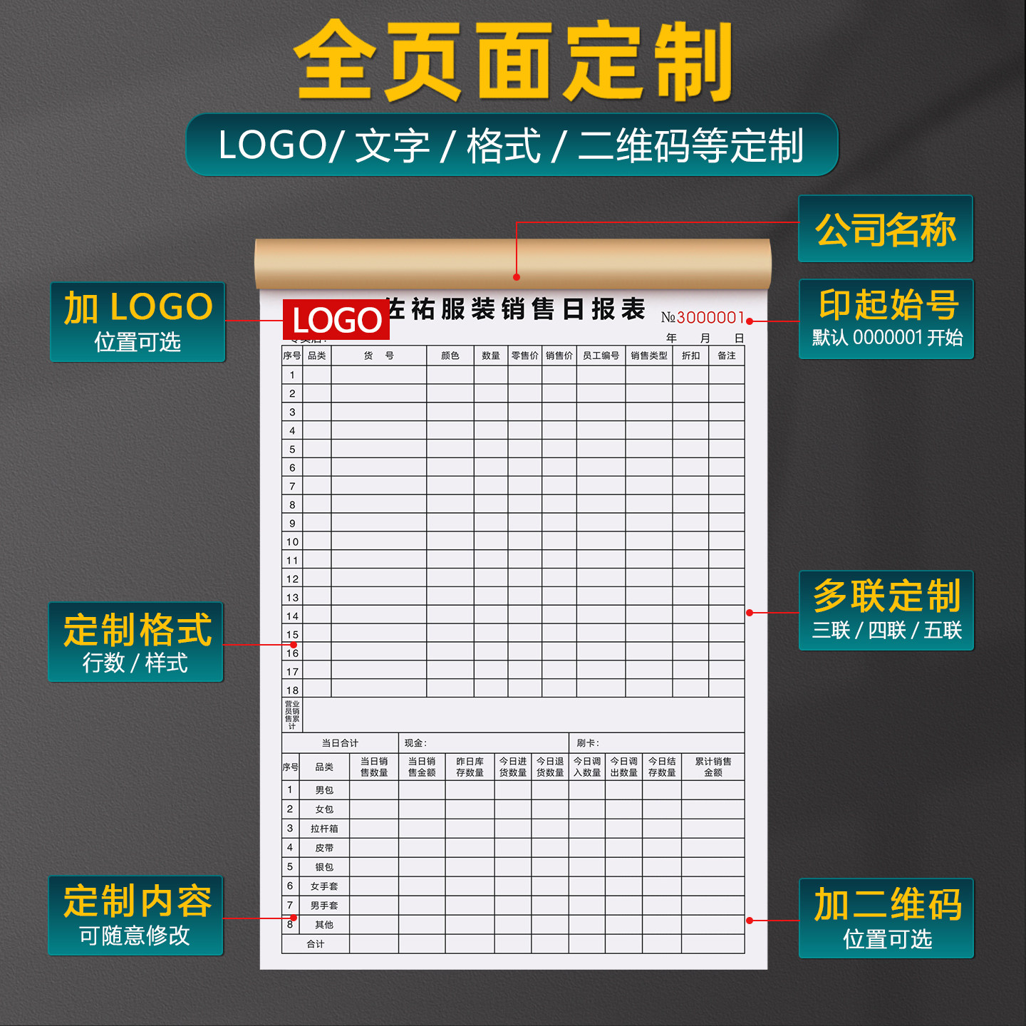 【销售日报表】服装店营业报表店铺商品批发零售记账本门店经营收入明细表仓库出入库登记表库存盘点统计台账